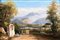 Carrillo, Achille (Avellino, 1818 - ?) Paesaggio con figure - Cava dei Tirreni olio su tavola cm 21,5x31 - con la cornice: cm 32x42