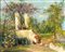Ferrigno, Antonio (Maiori, 1863 - Salerno, 1940) Giardino con polli olio su tela cm 40x50 - con la cornice: cm 54x64