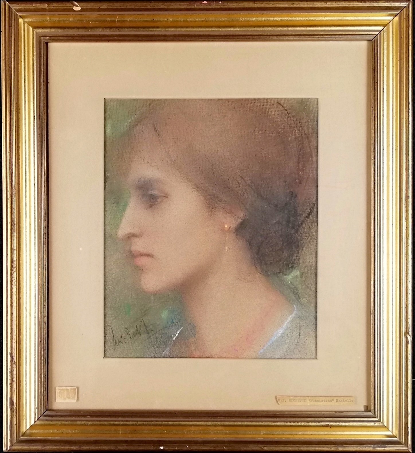 Michetti (attribuito), Francesco Paolo (Tocco da Casauria, 1851 - Francavilla al Mare, 1929) Nunziatina pastelli su carta cm 27x22,5 - con la cornice: cm 49x44