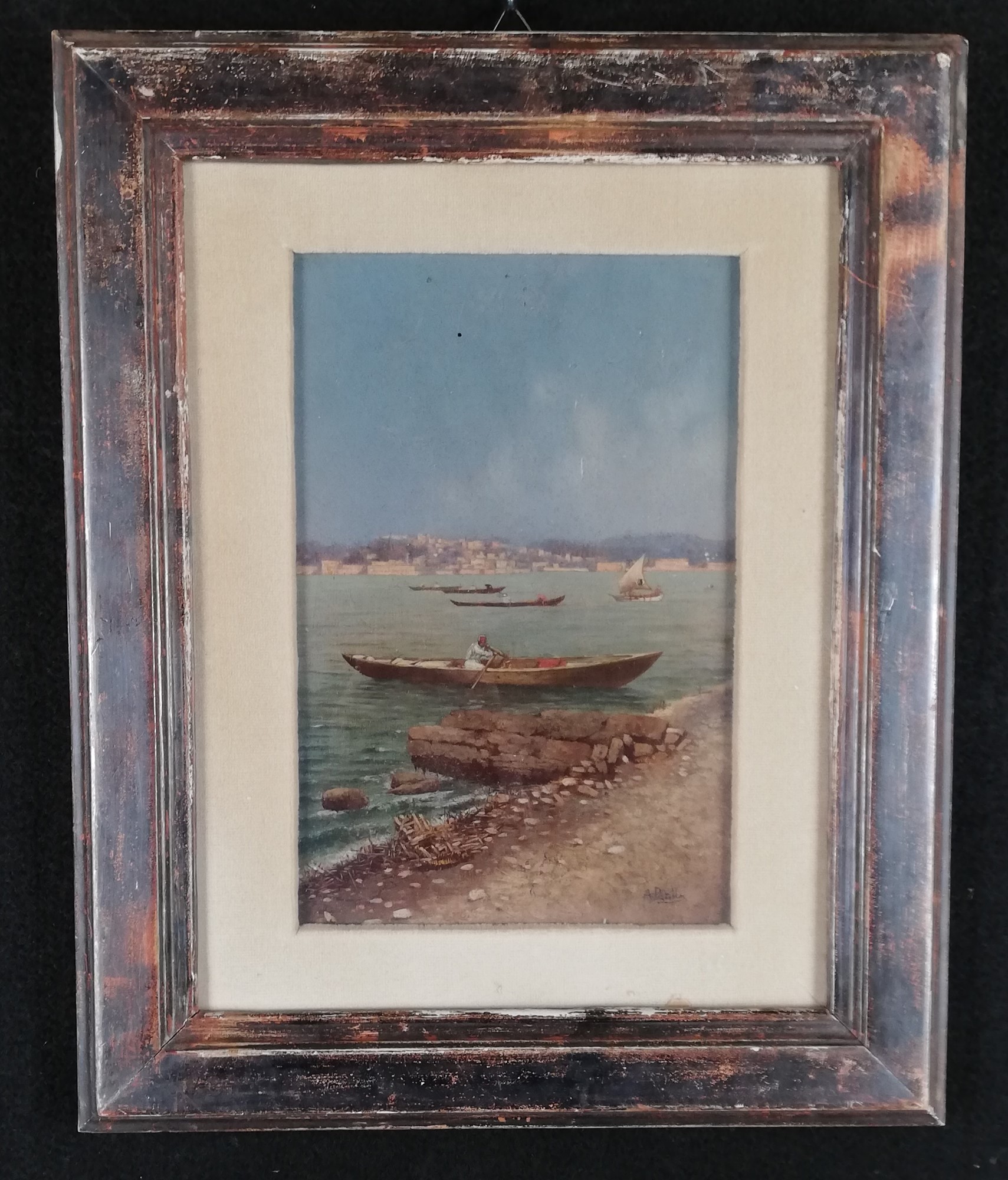 Attilio Pratella (1:Principale) (Lugo, 1856 - Napoli, 1949) Barca a Mergellina olio su tavola cm 30x20 - con la cornice: cm 44x36