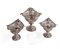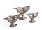 Trittico in argento, Londra, 1908, argentieri Goldsmiths & Silversmiths Company, cm 20,5x36,5x25 e cm 13,5x25x17,5 (la coppia) - peso complessivo gr. 1710, composto da tre coppe di cui una di misura maggiore, di forma ovale decorate a motivi vegetali e volute traforate e sbalzate; orli superiori ripiegati. Punzone degli argentieri Goldsmiths & Silversmiths Company, 142 Regent Street W sotto al piede della coppa principale