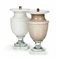 Coppia di lampade "Maurice" in vetro soffiato, color bianco lattimo e beige fumé, in vetro di Murano modello esclusivo eseguito dalla Vetreria Salviati, H. 47 cm, 47