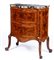 Piccolo cassettone lastronato in radica. XVIII secolo, fronte mosso a due cassetti, piedi ferini, piano in marmo, W. 76 - D. 46 - H. 97 cm