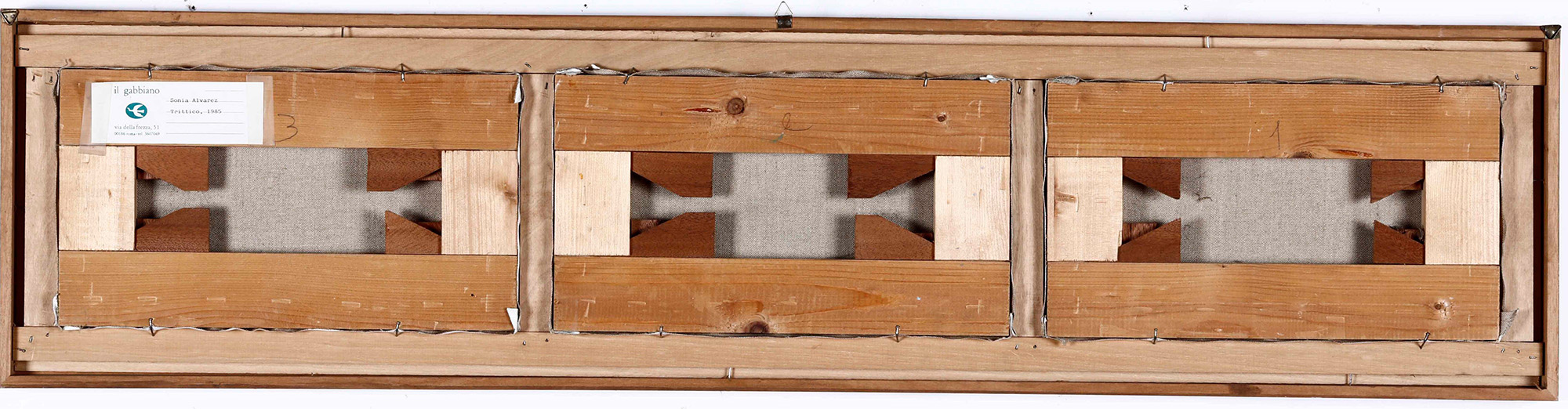 trittico, 1985 Sonia Alvarez (1932), olio su tela cm 17x30 cad.