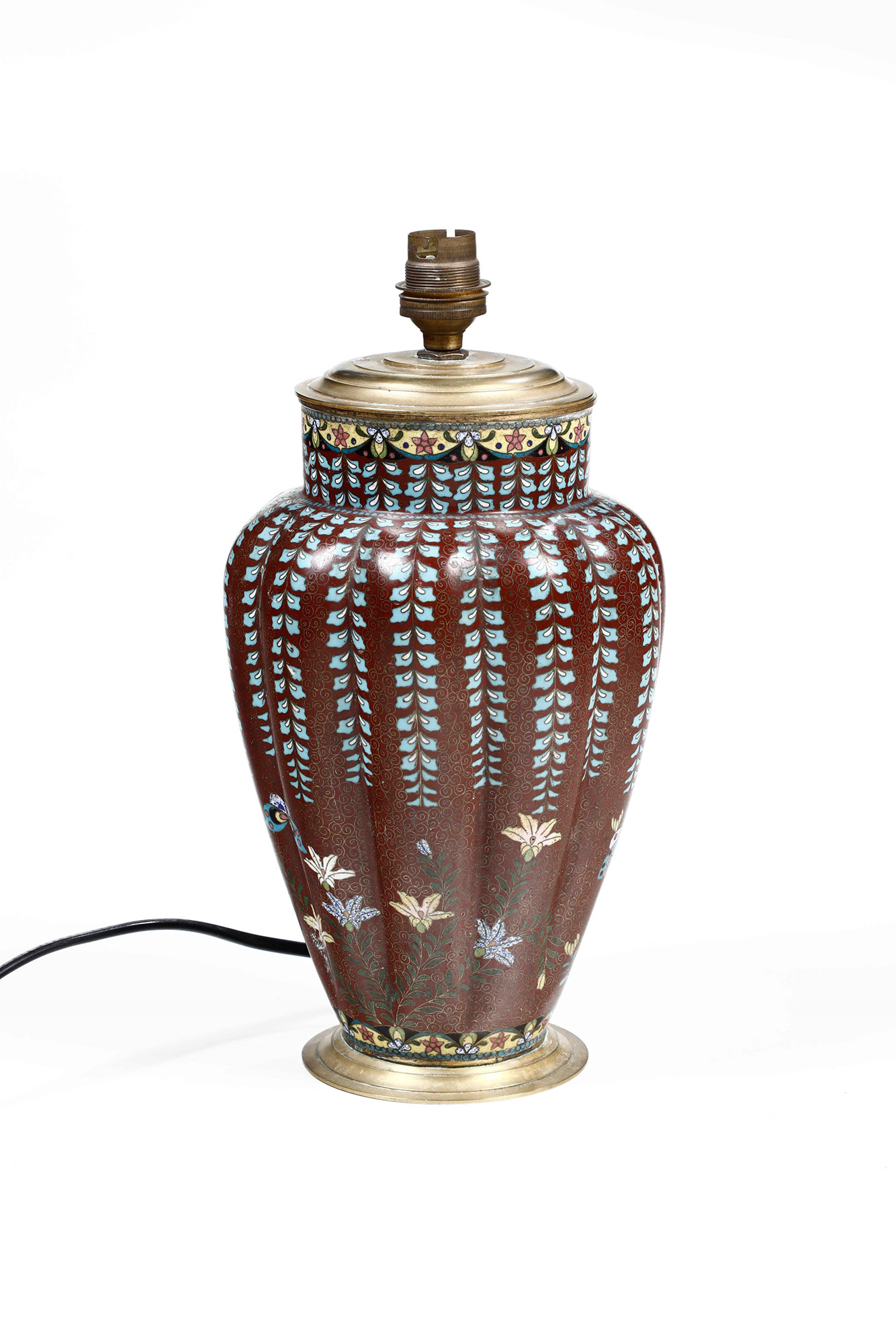 Vaso in smalto con decori floreali, Giappone, XX secolo, H. 26 cm