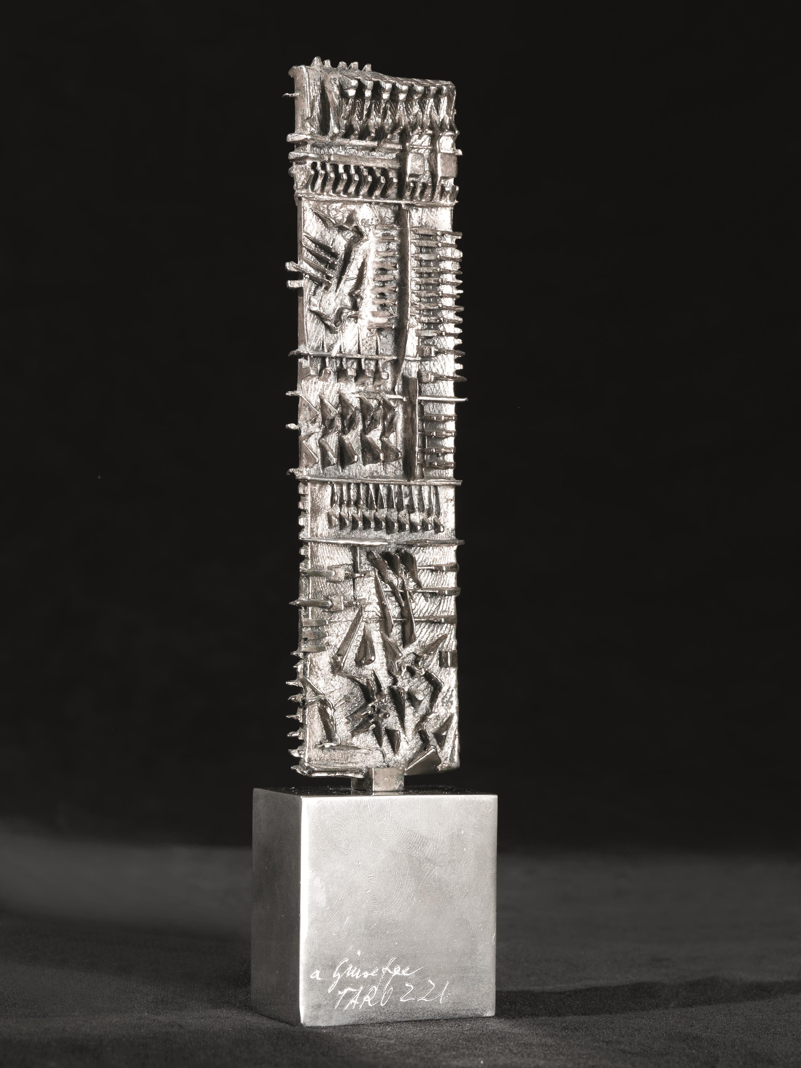 Arnaldo Pomodoro(Morciano di Romagna, 1926)STELEbronzo argentato su base in...