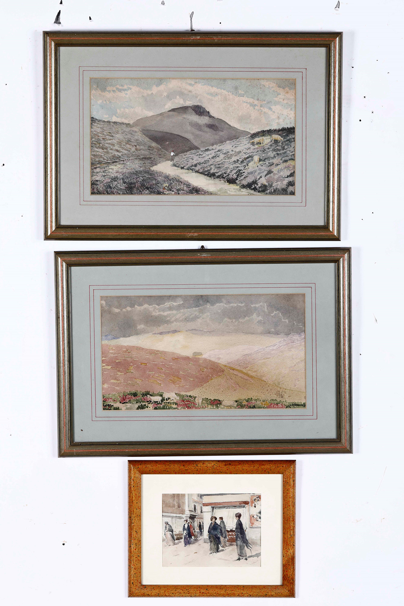 Anonimo del XX secolo, coppia di paesaggi ed una scena orientalista
