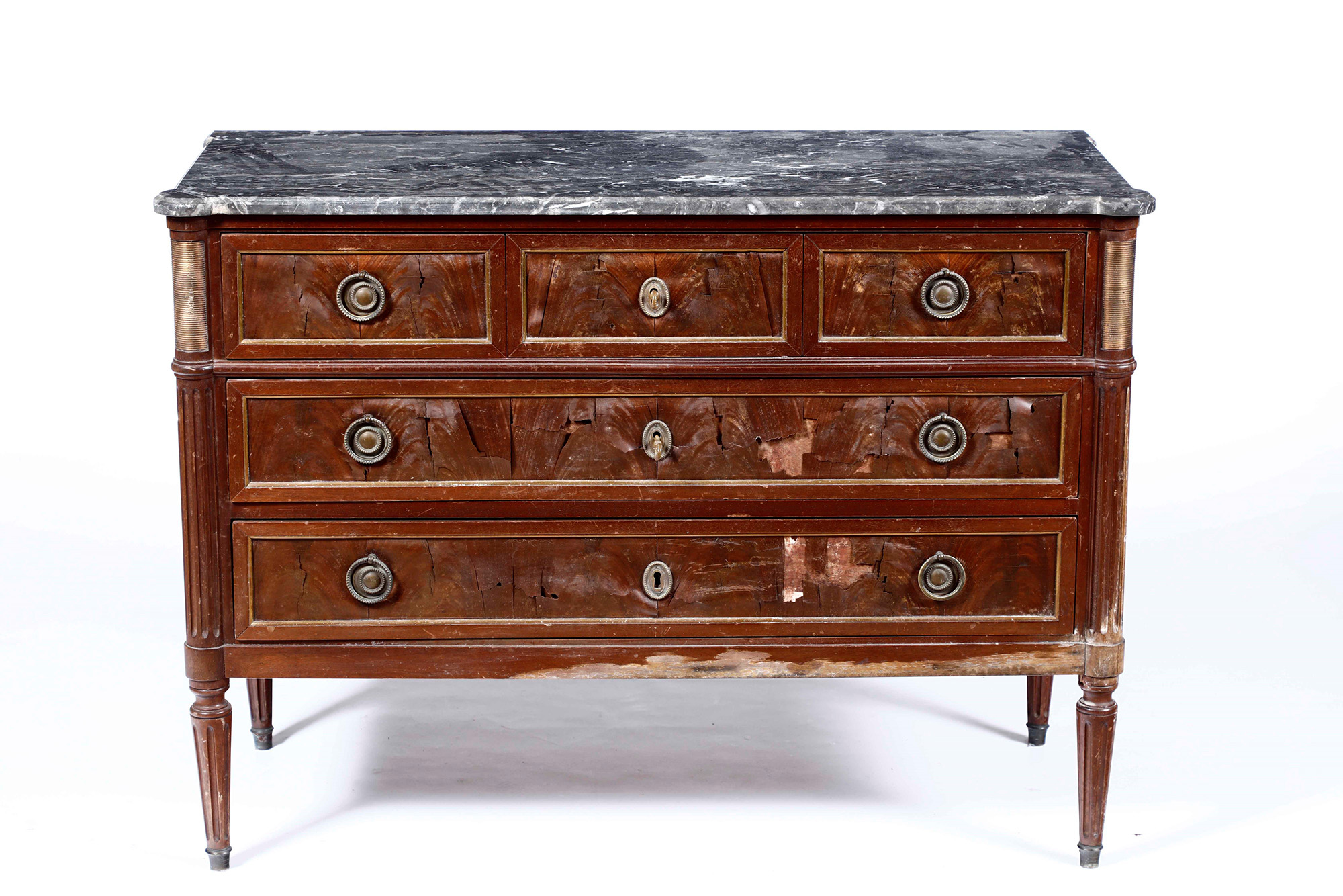 Comò lastronato, fronte a cassetti, piano in marmo. XX secolo