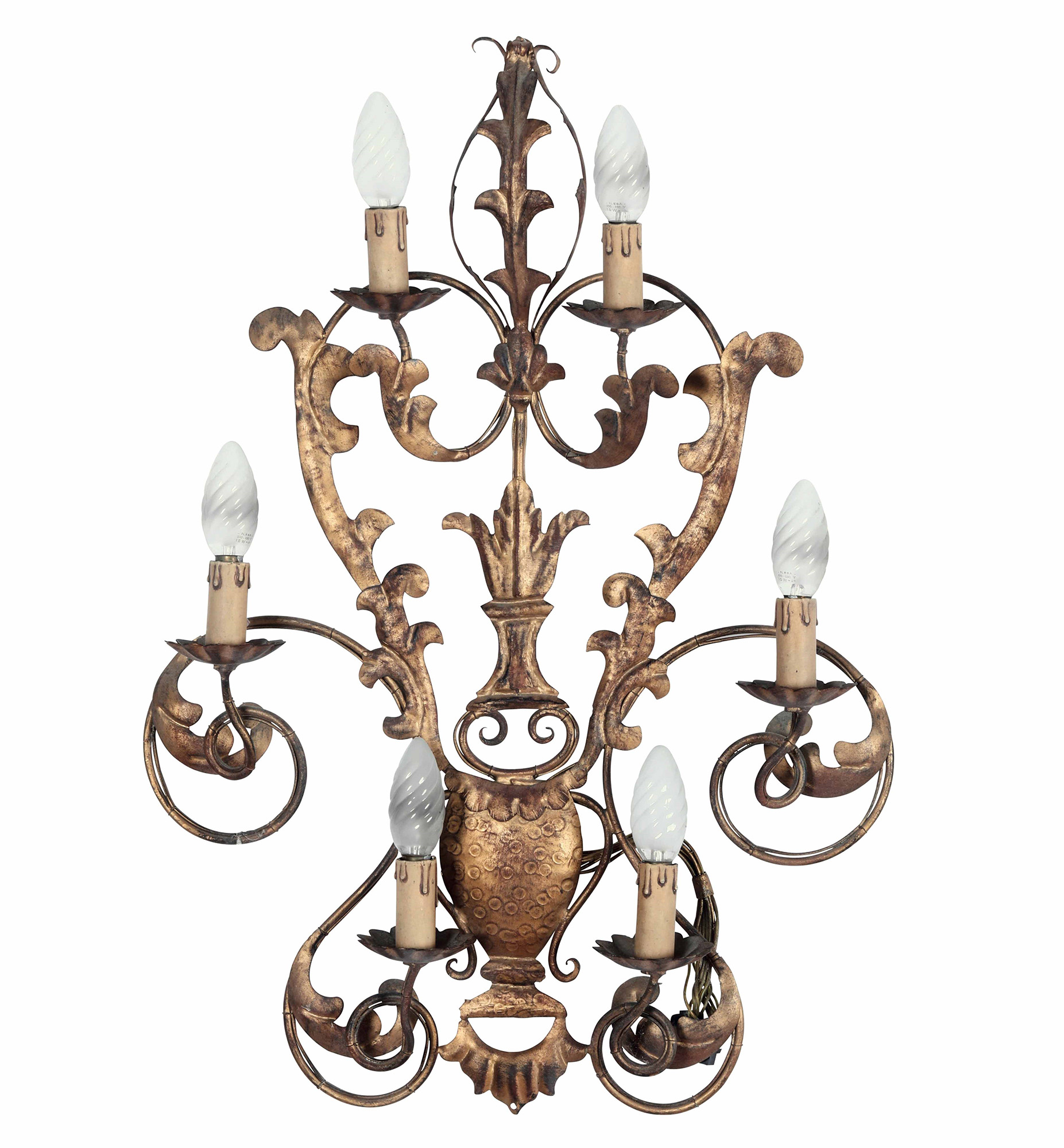 Applique a sei luci in metallo dorato, XX secolo