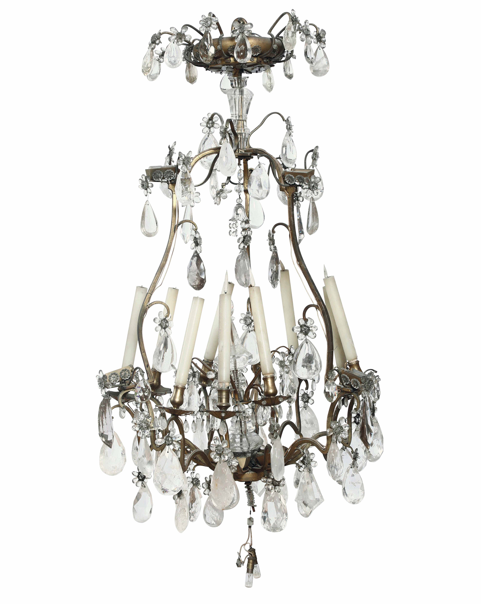 Grande lampadario a dieci luci in bronzo e cristallo di Rocca. XIX secolo
