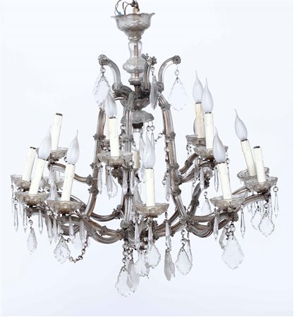 Lampadario umbertino a 12 fiamme con cristalli. XIX secolo