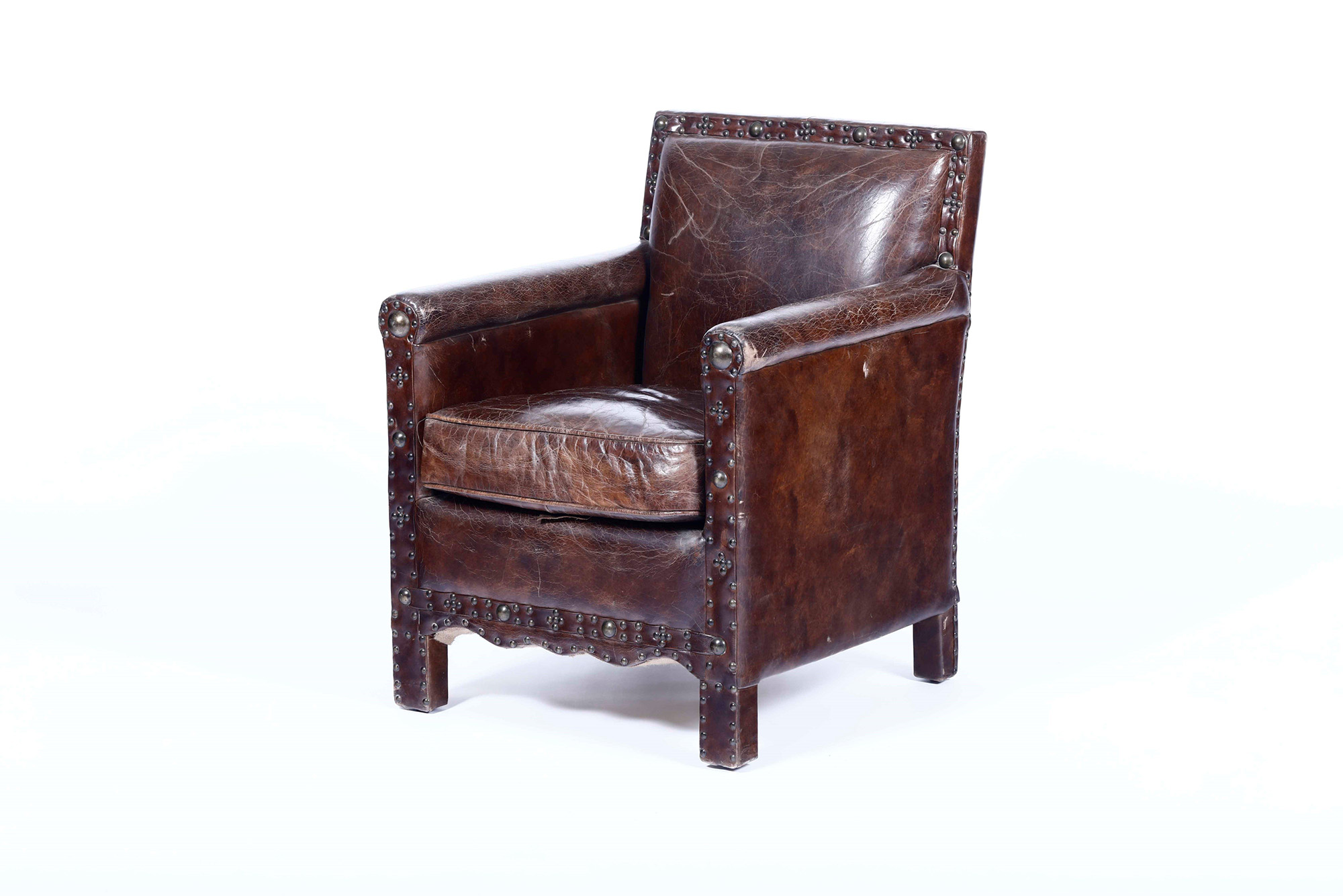 Poltrona imbottita e rivestita in pelle, W. 64 - D. 64 - H. 81 Cm