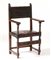 Seggiolone in legno intagliato, XIX-XX secolo, seduta e schienale in cuoio con borchie in metallo, cartella intagliata a motivi vegetali, W. 71 - D. 50 - H. 117 Cm
