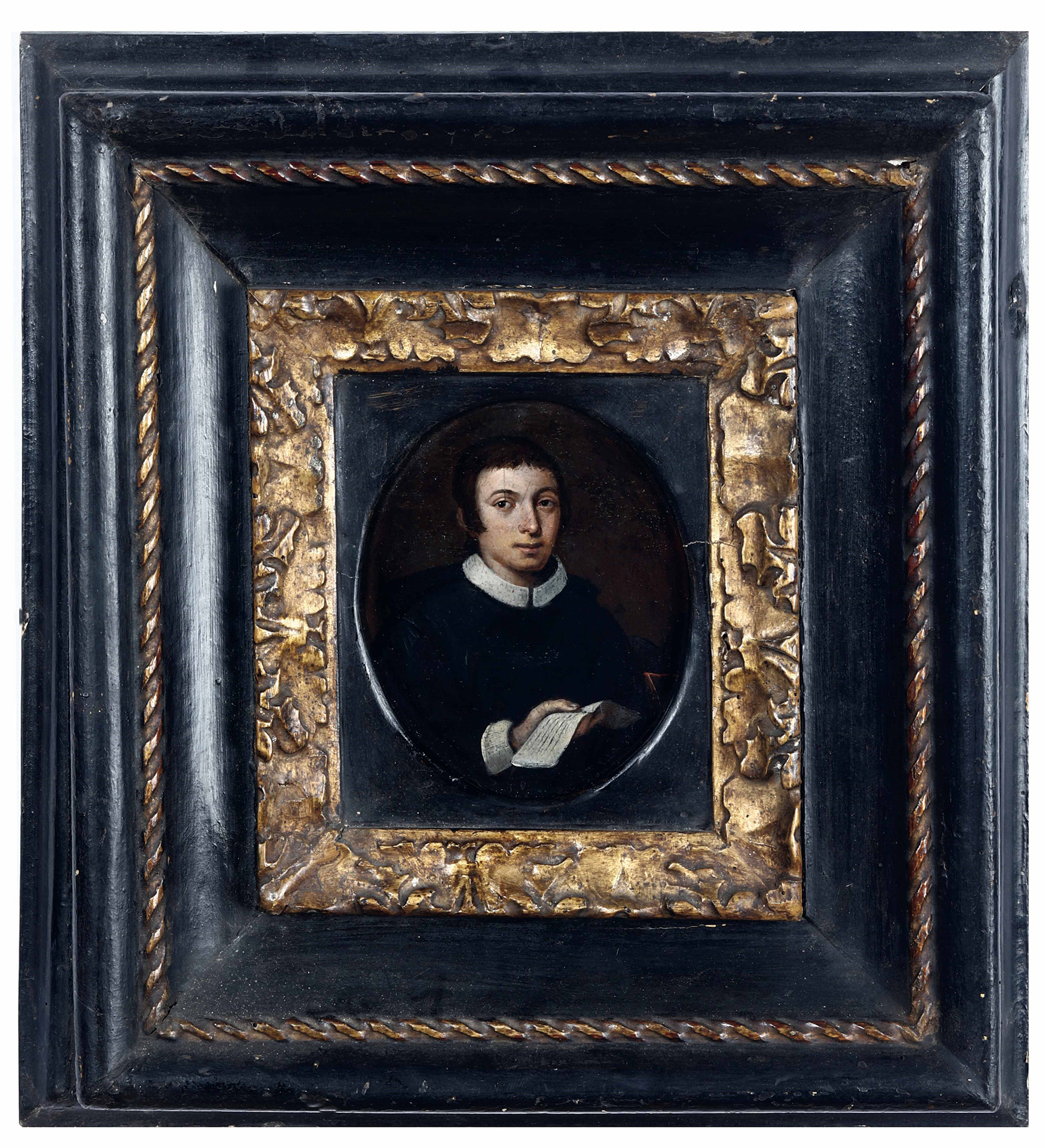 Ritratto di giovane Scuola del XVII secolo, olio su rame, in cornice, W. 10 - H. 12,5 Cm