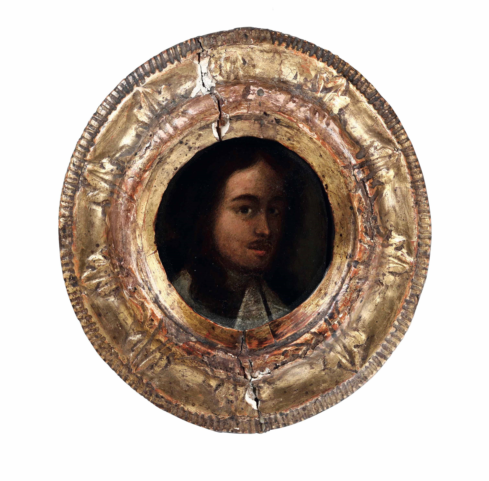 Ritratto virile Scuola del XVII secolo, olio su rame. In cornice, W. 5 - H. 5 Cm