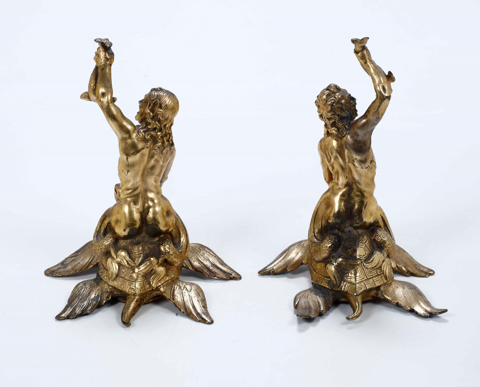 Tritone e Sirena, bronzo dorato e cesellato, fonditore del XVII secolo
