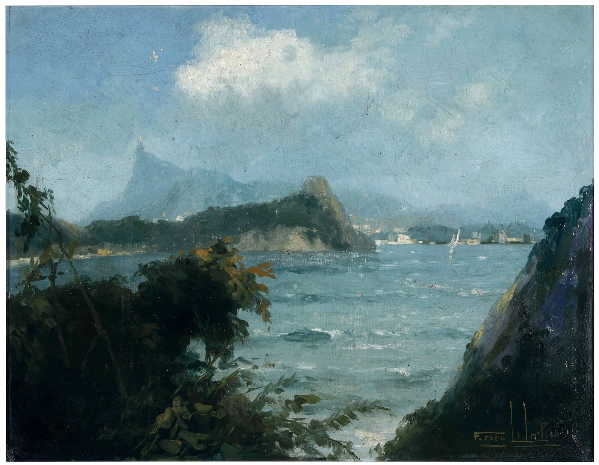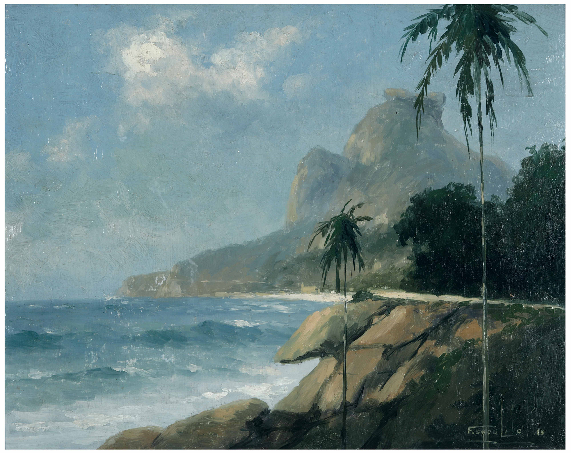 Paesaggi sudamericani Artista del XIX secolo, coppia di dipinti su masonite, firmati in basso a destra, W. 39 - H. 31 Cm