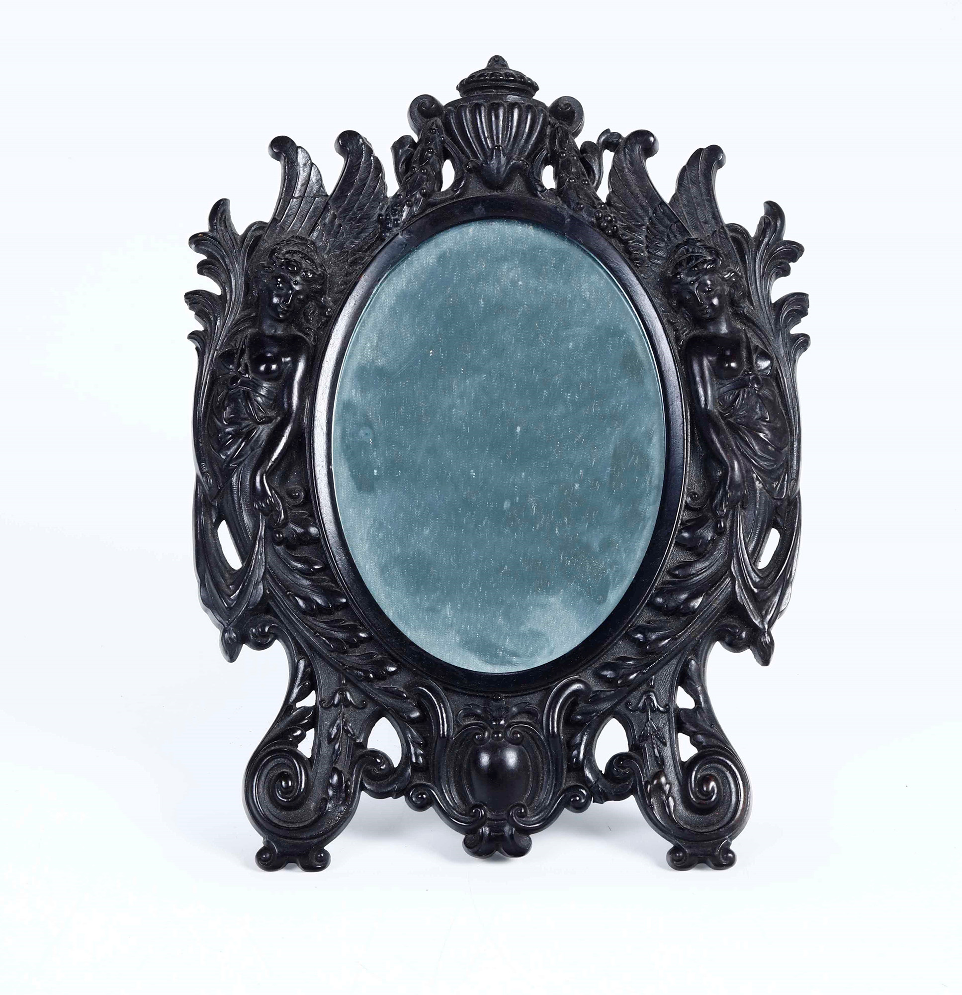Piccola specchiera ovale con cornice in bronzo, XIX-XX secolo