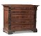 Comò in noce intagliato e radica di noce. Italia centrale XVII secolo
