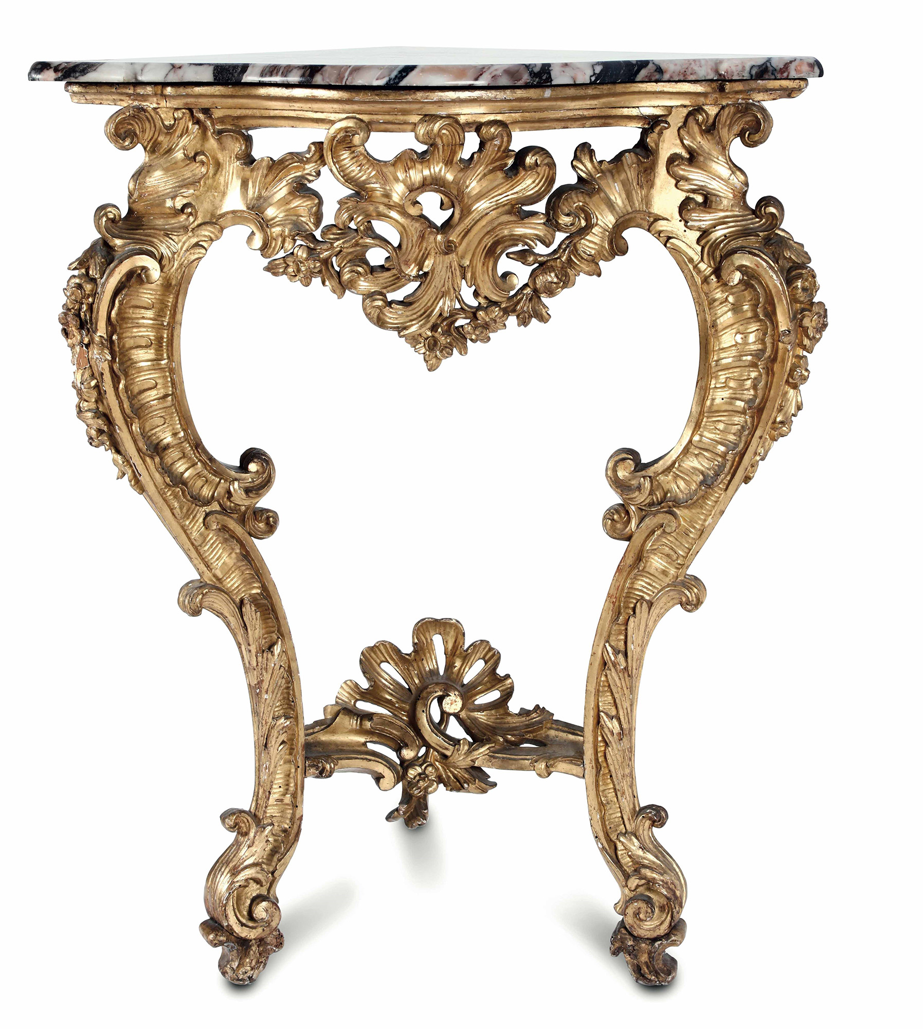 Consolle ad angolo in legno intagliato e dorato. Fine XVIII secolo