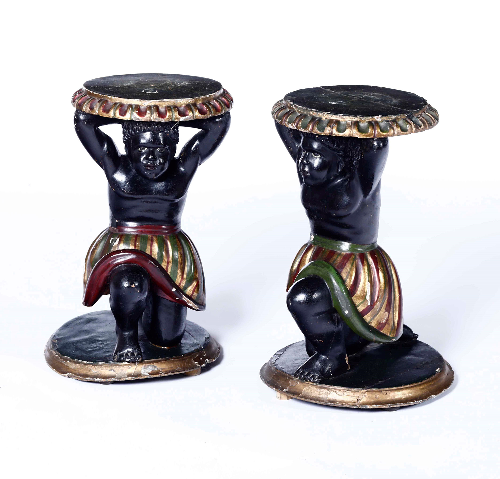 Coppia di moretti reggivaso. Veneto XIX - XX secolo