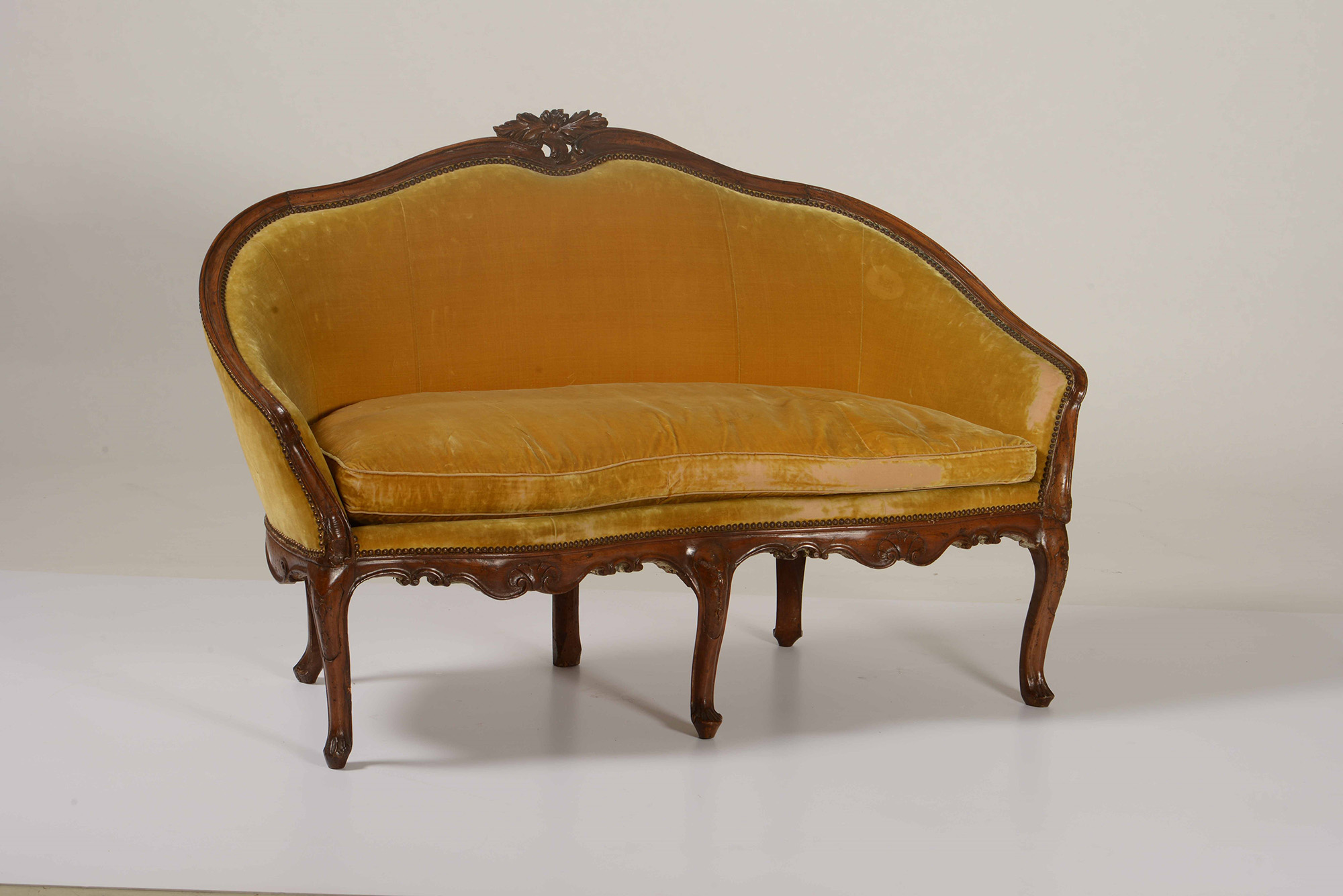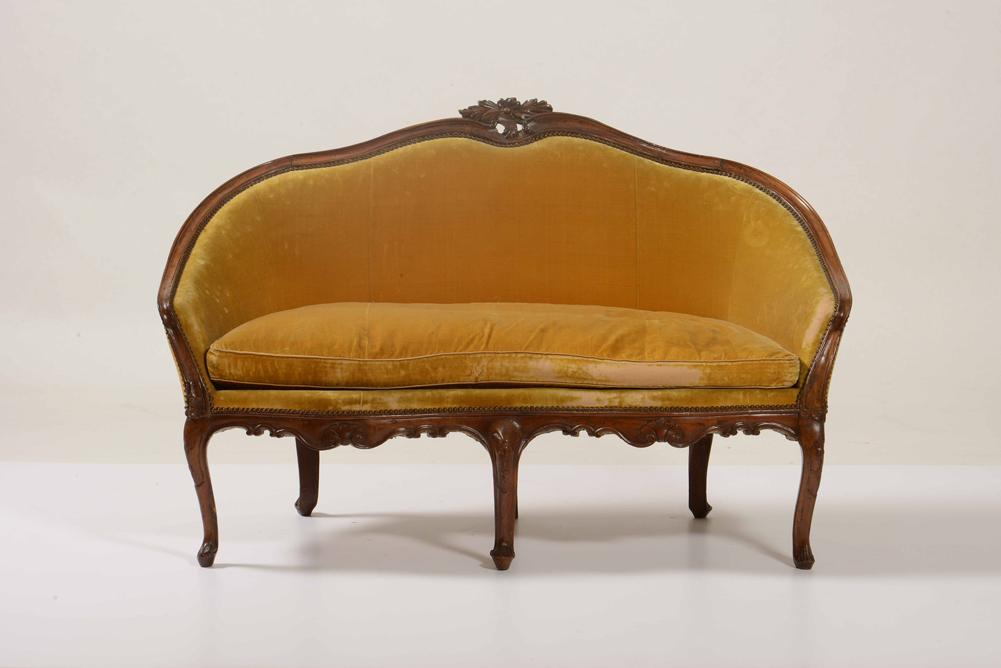 Divanetto Luigi XV in legno intagliato, Francia XVIII secolo