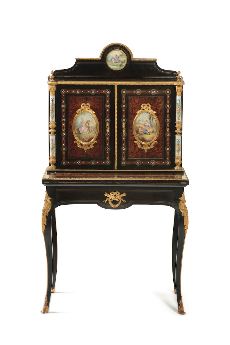 Mobile in stile Napoleone III in legno lastronato, ebanizzato con applicazioni di porcellane di Sèvres e bronzi cesellati e dorati. XIX-XX secolo