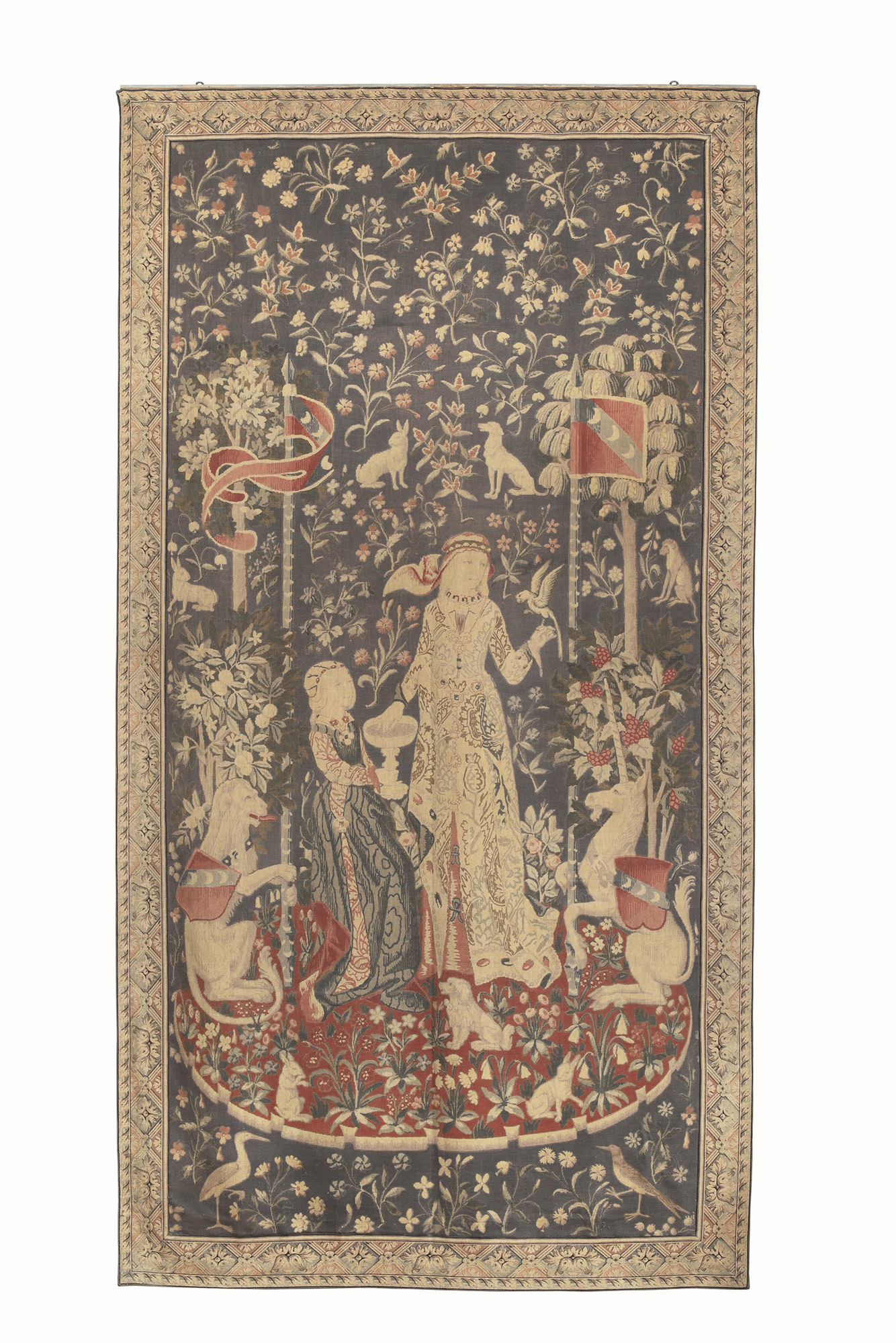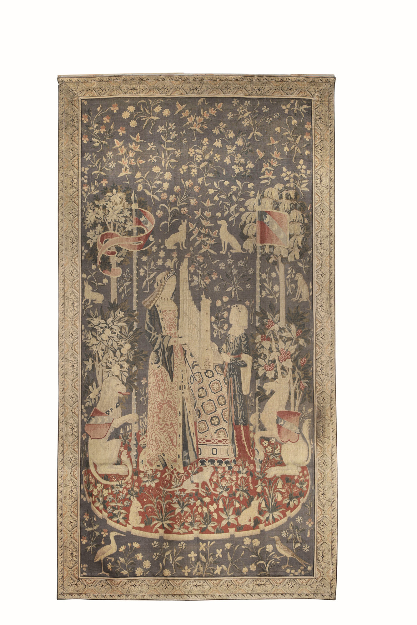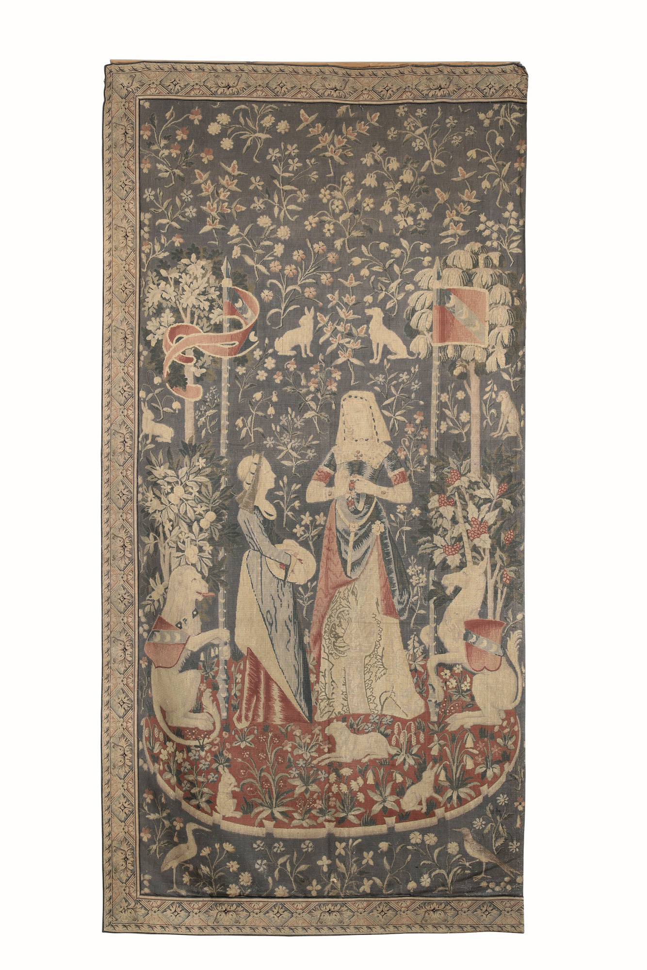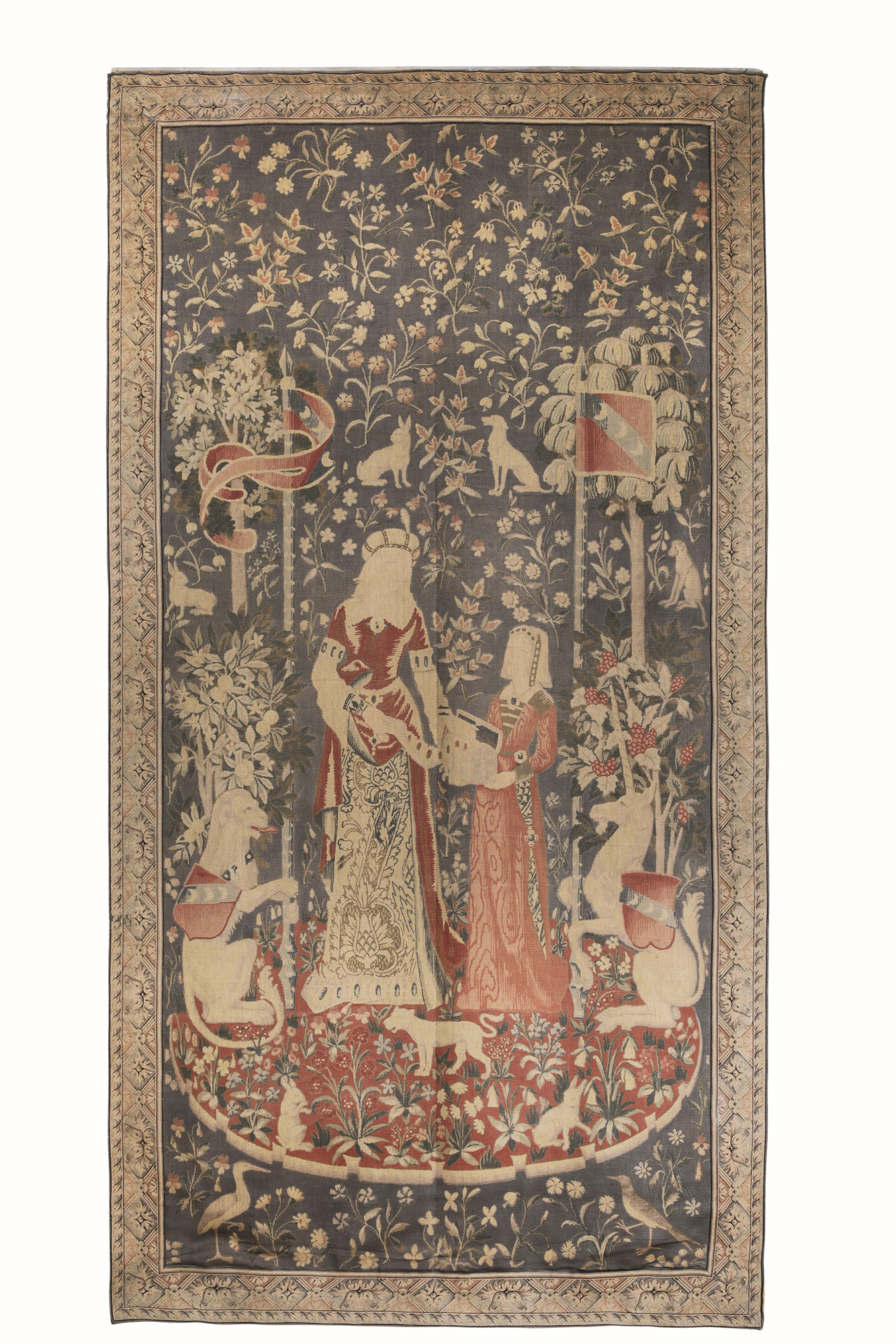 Quattro succhi d'erba fine XIX secolo, con motivi "Millefiori" di gusto quattrocentesco , Uno cm 295x140, tre cm 295x155