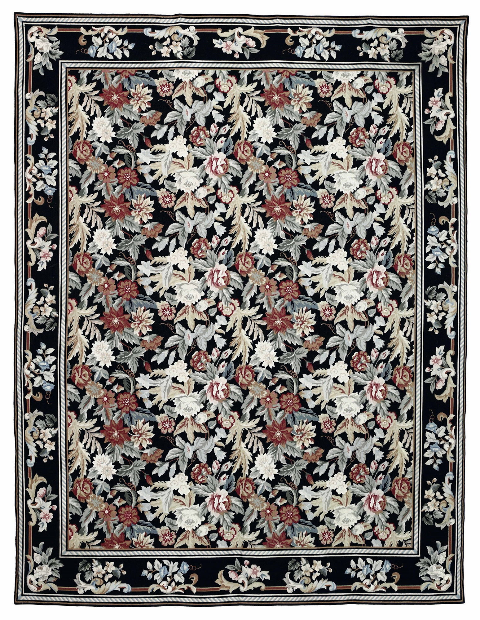 Piccolo punto Cina metà XX secolo, campo nero marrone con decoro floreale, W. 290 - D. 220 cm