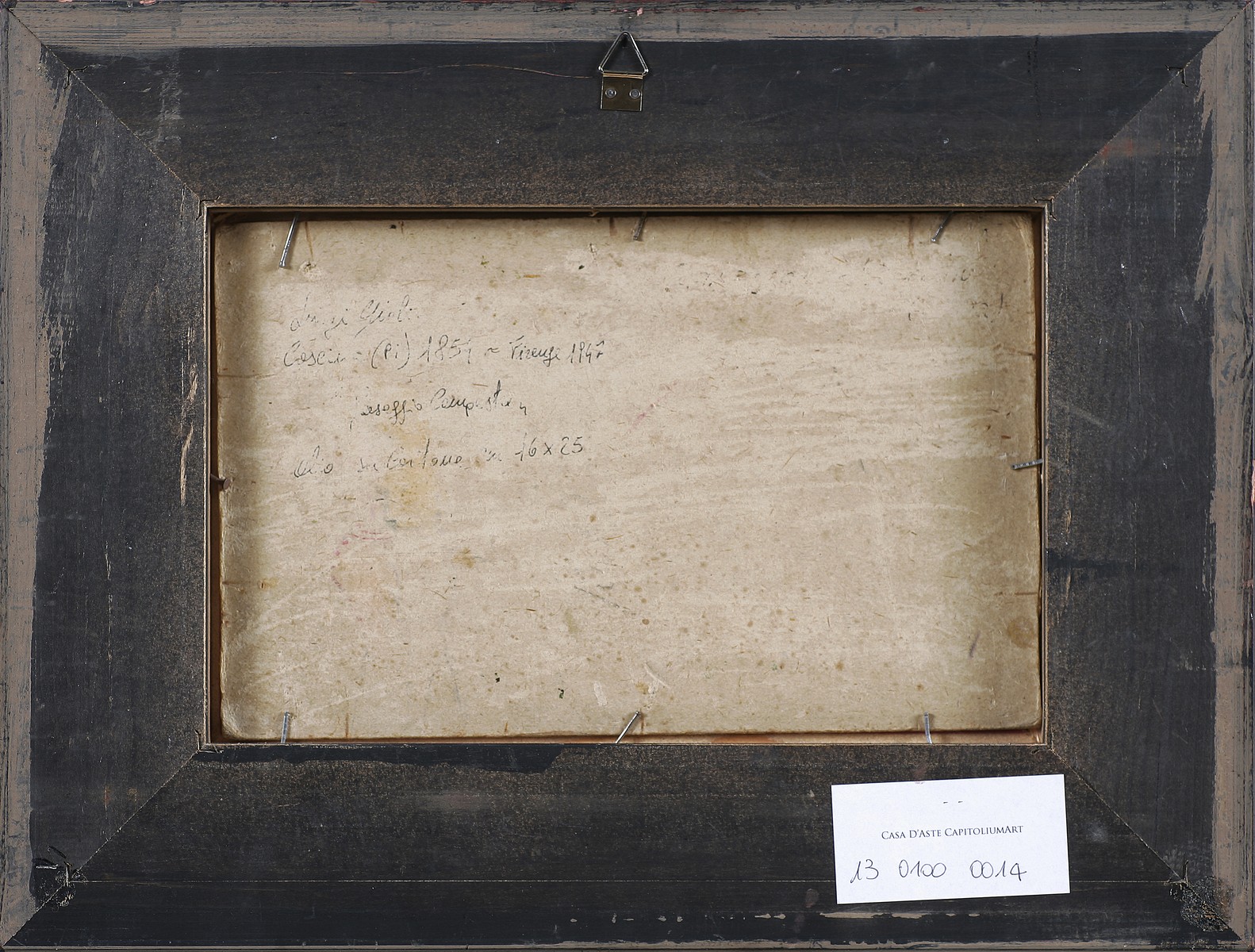 GIOLI LUIGI (1854 - 1947) Paesaggio campestre. Olio su tavola. Cm 25,00 x 16,00. Firma in basso a destra. Al retro titolo e firma. Cornice presente