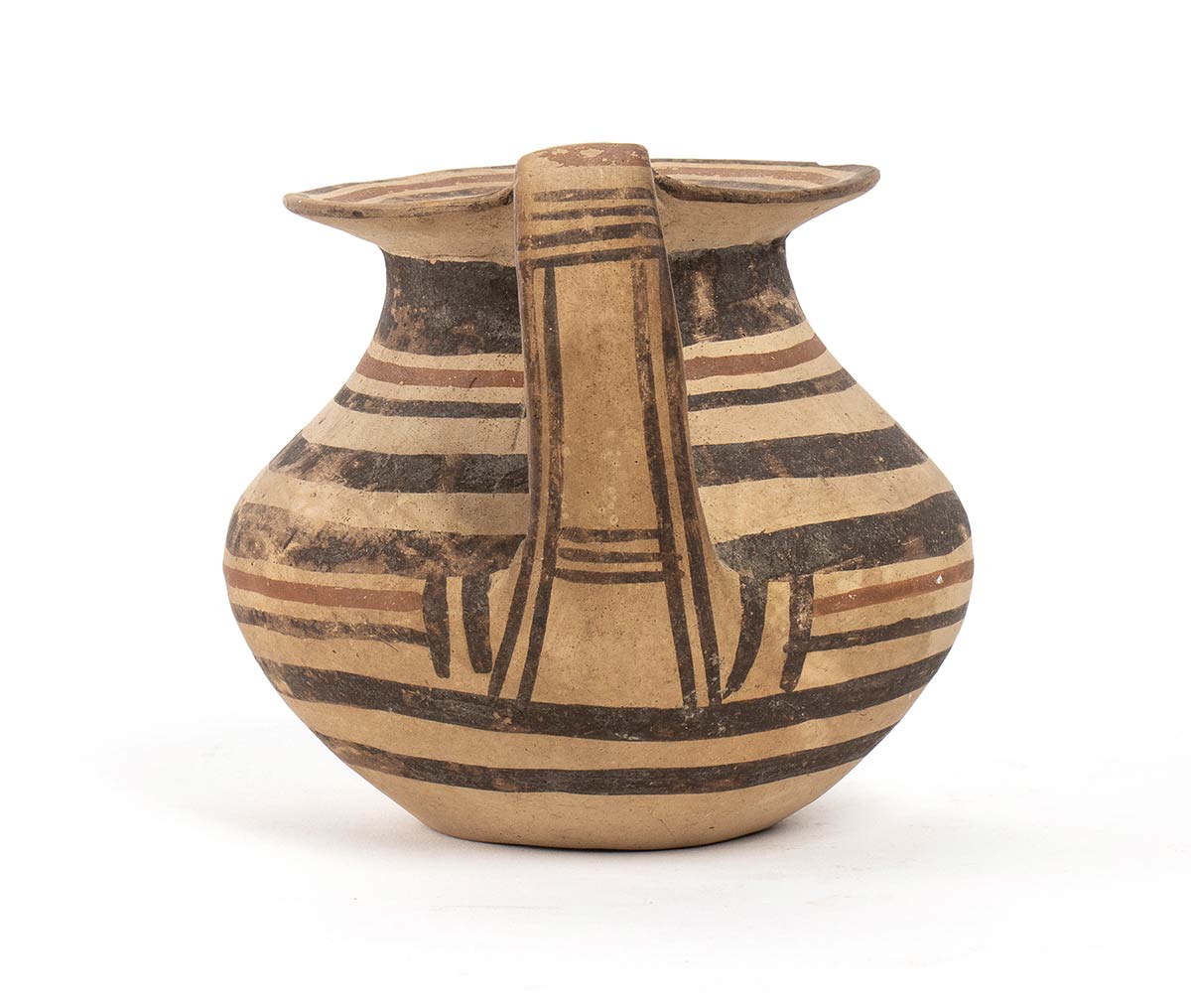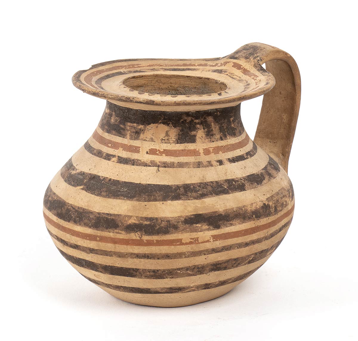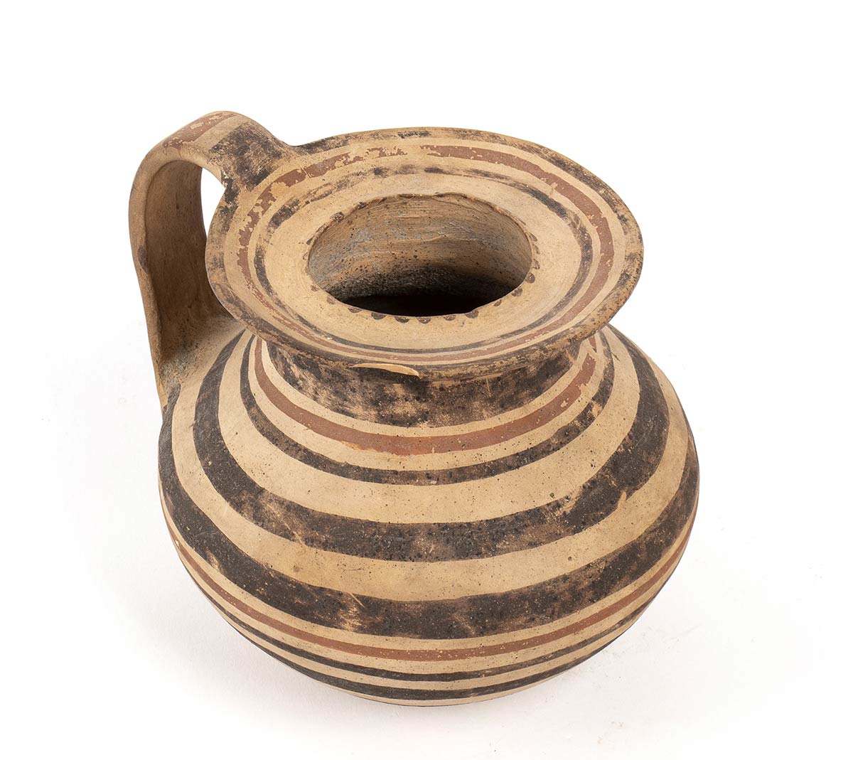 Con decorazione policroma a linee continue parallele; piccola sbeccatura sul labbro.