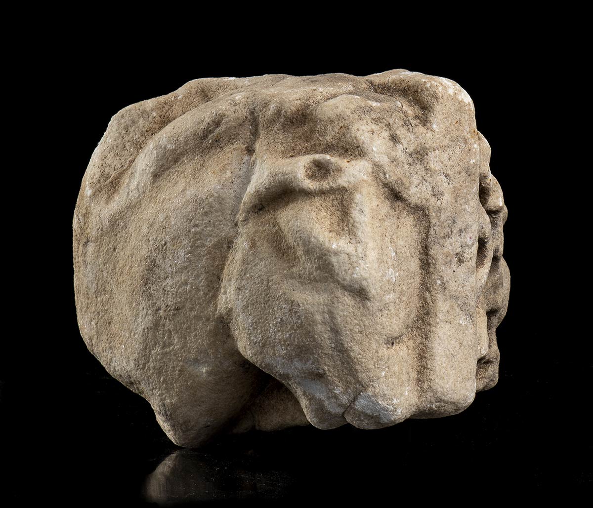 RILIEVO SU DUE FACCEEpoca romanaMarmo, cm 10 x 9,5Su di un lato, il profilo...