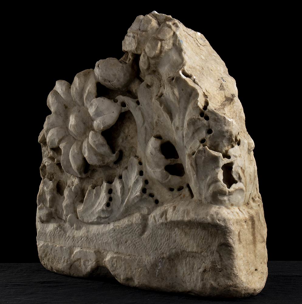 Grande rilievo scultoreo con fregio floreale e girali d'acanto.