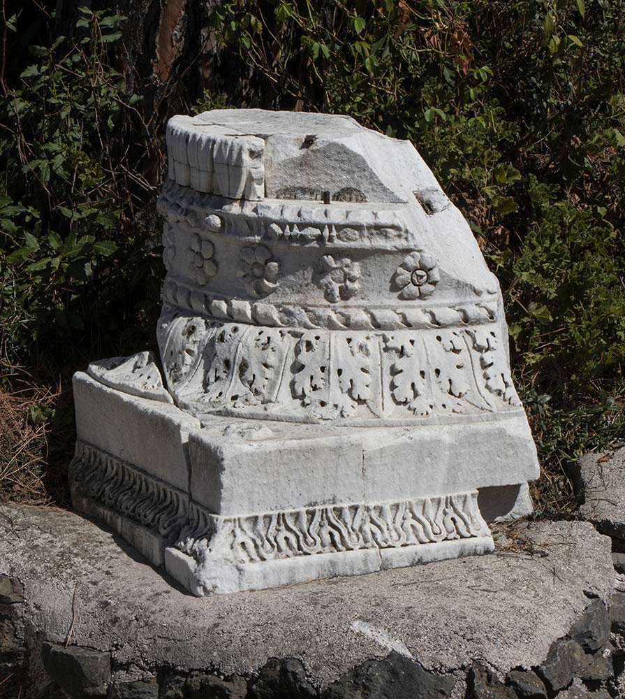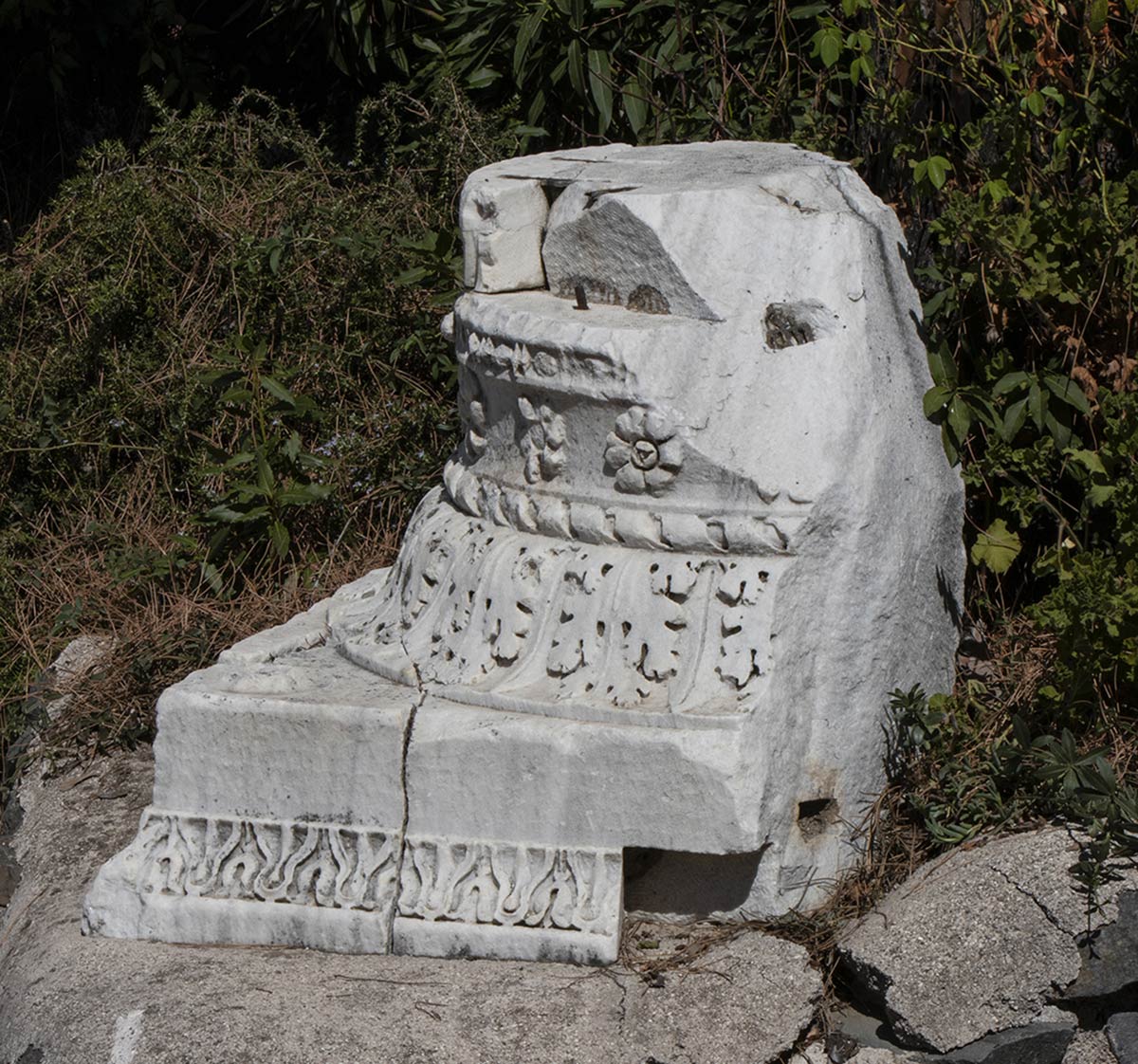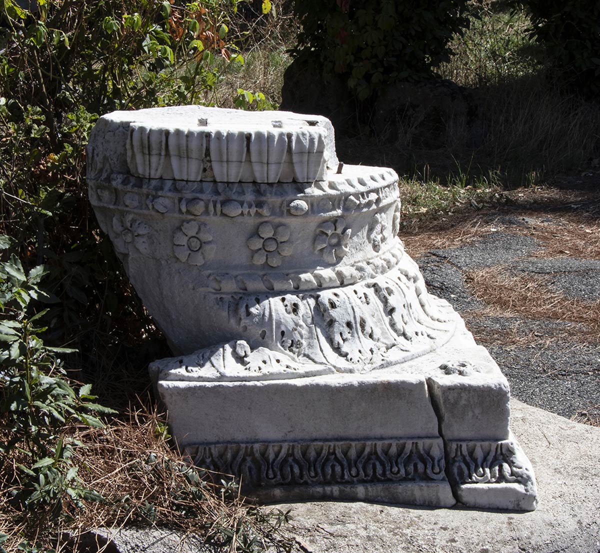 Esemplare eccezionalmente raro ed riccamente decorato, il kyma lesbio trilobato del coronamento ai lati dell’abaco trova confronti nel Foro di Traiano.