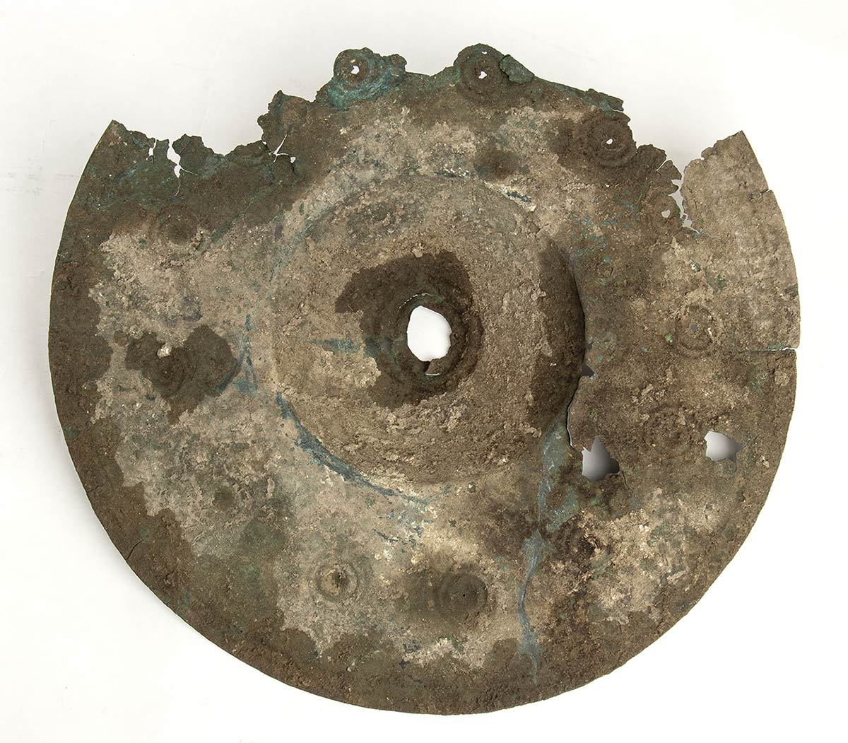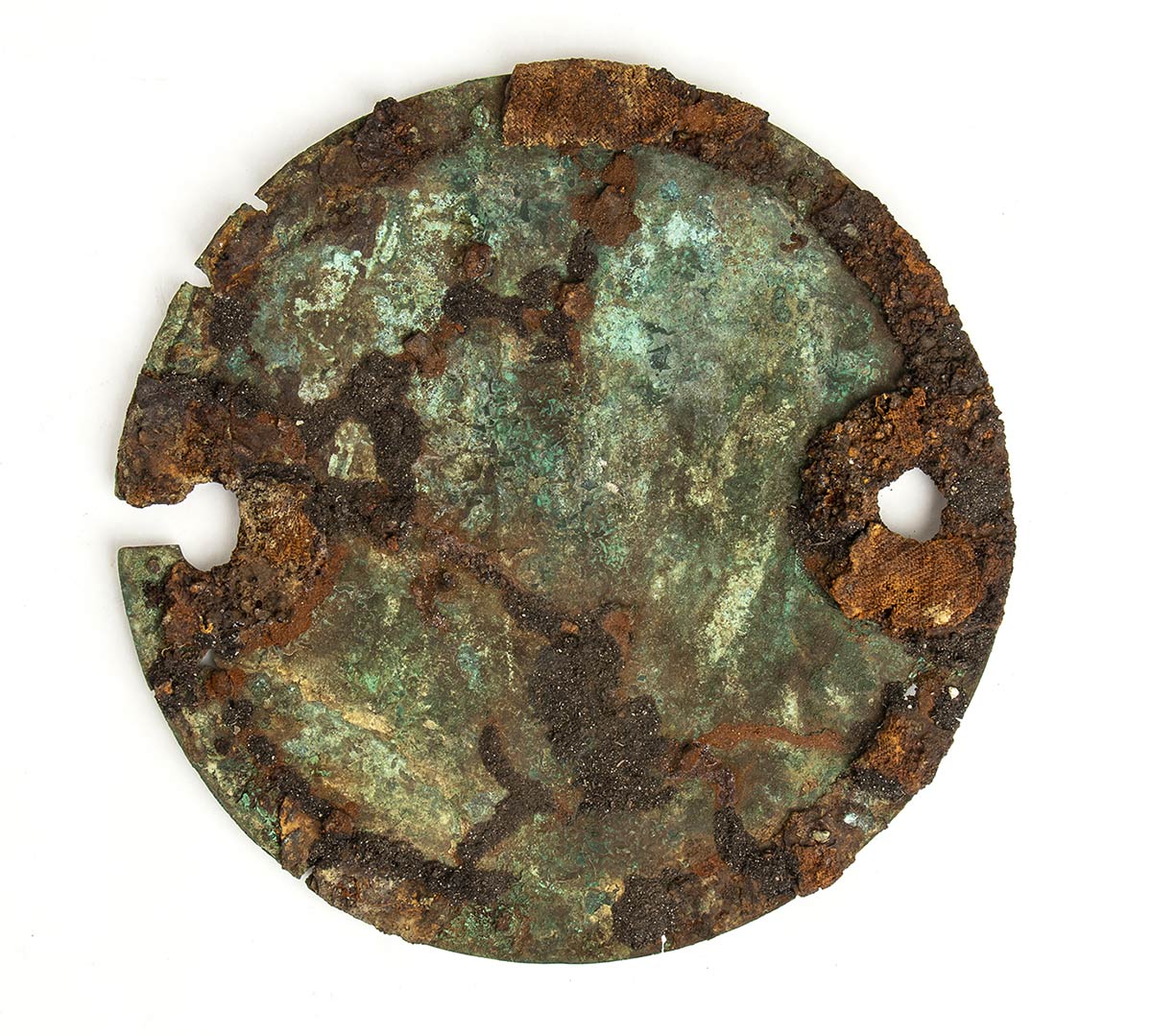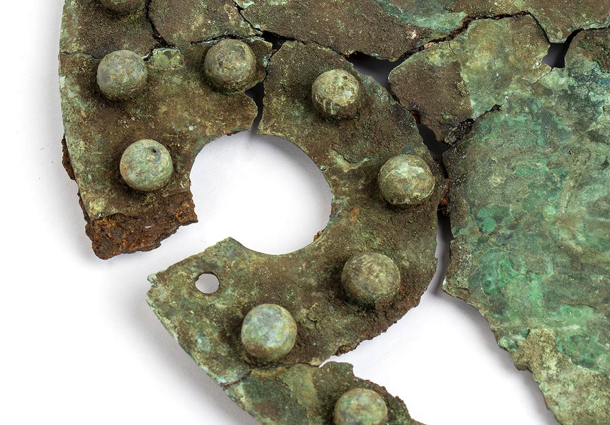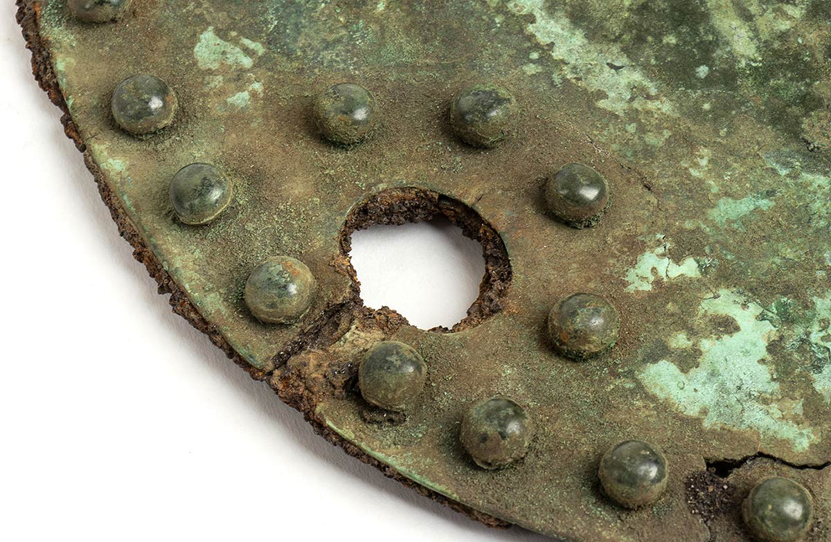Eccezionale gruppo costituito da una coppia di dischi corazza (Kardiophylakes) e da un disco in bronzo decorato con settore centrale rilevato a cupola. I due dischi corazza, uno intergo e l'altro frammentario, lungo i margini presentano chiodi a capocchia sferica e due rientranze contrapposte a goccia. Sono ascrivibili per tipologia al gruppo "Mozzano", ed eccezionalmente conservano sul lato posteriore una cornice in ferro con adesi lembi di tessuto. Il kardiophylax era l'armatura tipica delle popolazioni italiche preromane dell'Italia centrale, diffusa in particolare tra Sanniti ed Umbri; rappresentava la protezione per il busto, una corazza rigida di piccole dimensioni di cuoio e di metallo collocata a protezione del cuore, da cui il nome. Tra le statue che raffigurano guerrieri muniti di kardiophylax, la più nota è il celebre guerriero di Capestrano.
