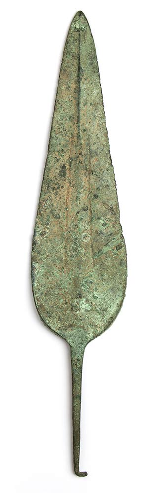Esemplare in buona conservazione, con patina originale, costolatura centrale e codolo uncinato. Per un confronto similare vd. l'esemplare conservato al British Museum n. 134342, proveniente dall'area di Khurvin, Iran.
