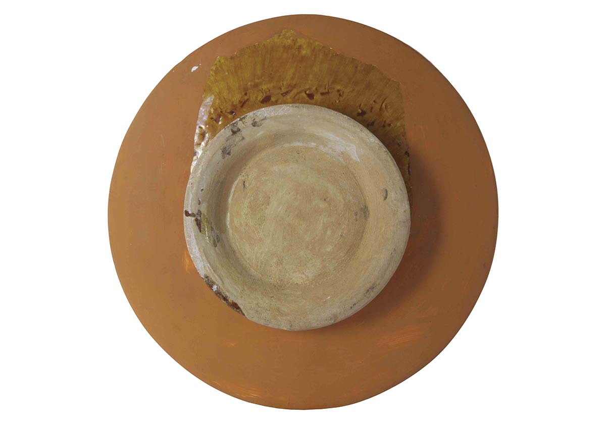 Oggetto da corredo di tipologia monastica postridentina propria del Seicento (R. Magnani, "La ceramica ferrarese tra Medioevo e Rinascimento", I-II, Ferrara 1982). Evidente restauro integrativo.