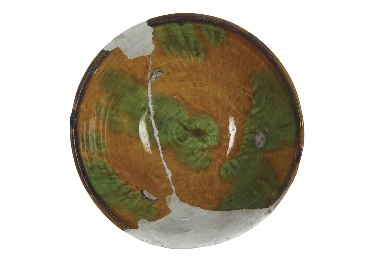 CIOTOLA INVETRIATA IN VERDE E ARANCIOFerrara, XVII secoloalt. cm 6; diam. cm...