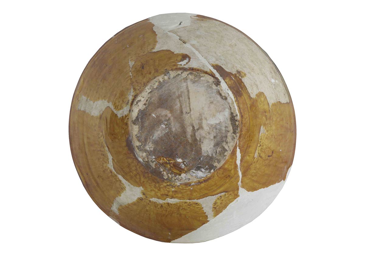 Oggetto da corredo di tipologia monastica postridentina propria del Seicento (R. Magnani, "La ceramica ferrarese tra Medioevo e Rinascimento", I-II, Ferrara 1982). Evidente restauro integrativo.