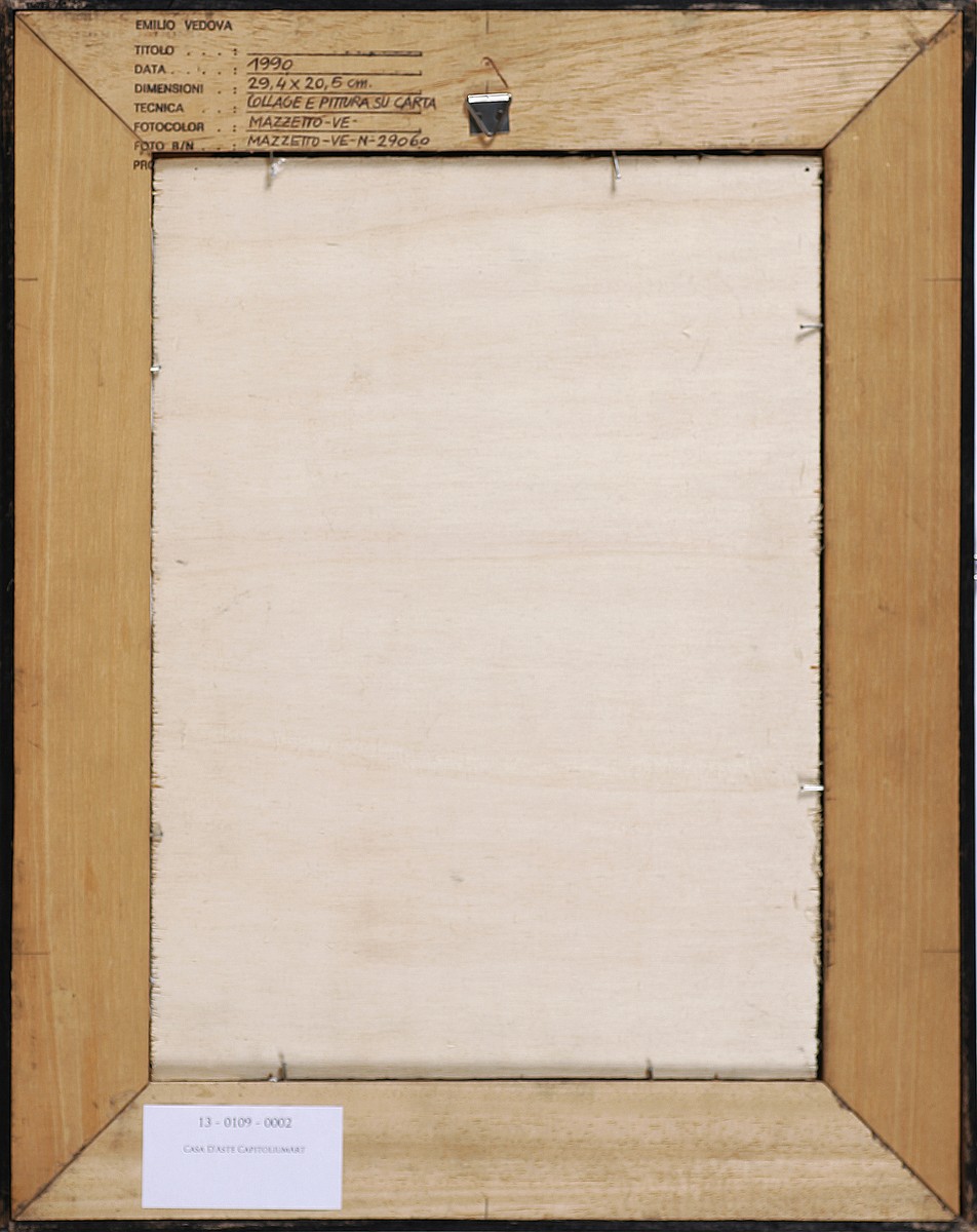 VEDOVA EMILIO (1919 - 2006) Senza Titolo. 1990. collage e gouache su carta. Cm 20,00 x 29,00. Opera registrata presso l'archivio Vedova. Provenienza: Sotheby's Milano, 26 novembre 2008, lotto n 332. Firmato e datato 90. Cornice presente