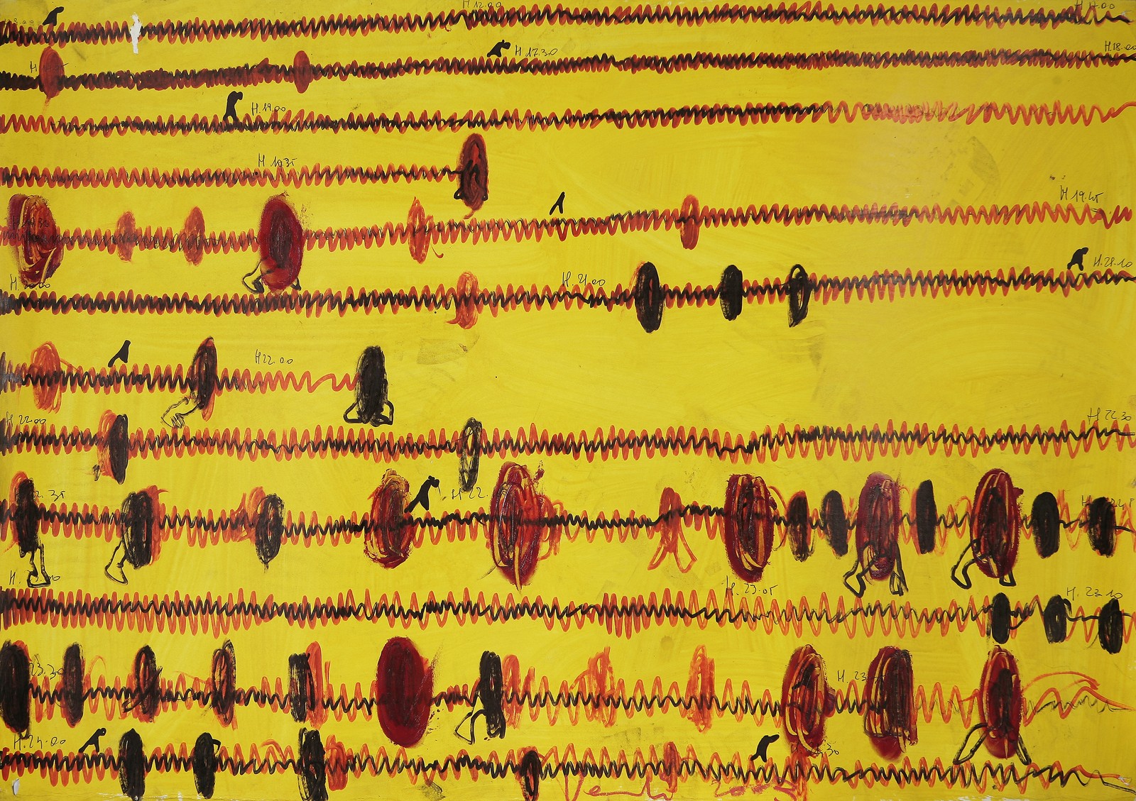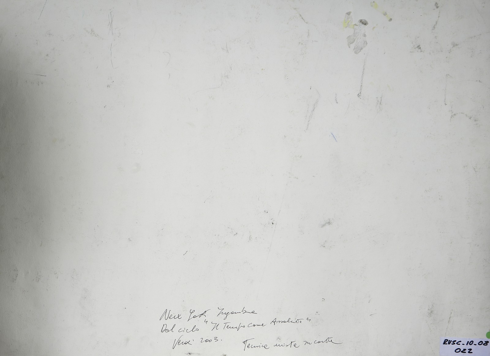 VERDI ALESSANDRO (n. 1960) New York ingombra. tecnica mista su carta. Cm 100,00 x 70,00. Al retro: dal ciclo 'Il tempo come assoluto'. New York, 2003 e firma