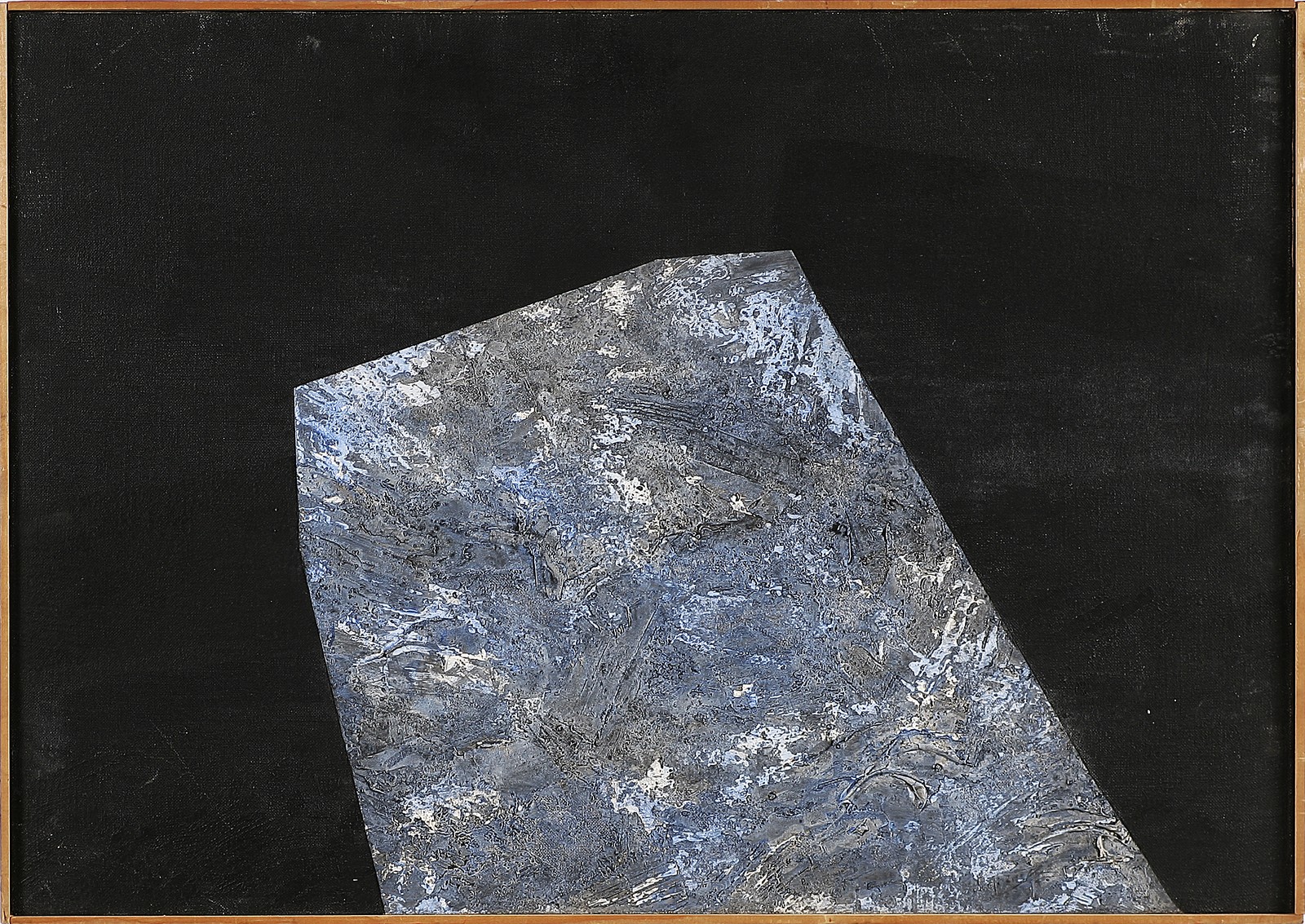 FUKUSHI ITO (n. 1952) Nello spazio e nel tempo. 1986. Tecnica mista su tela. Cm 70,00 x 50,00. Al retro titolo firma e anno. Cornice presente