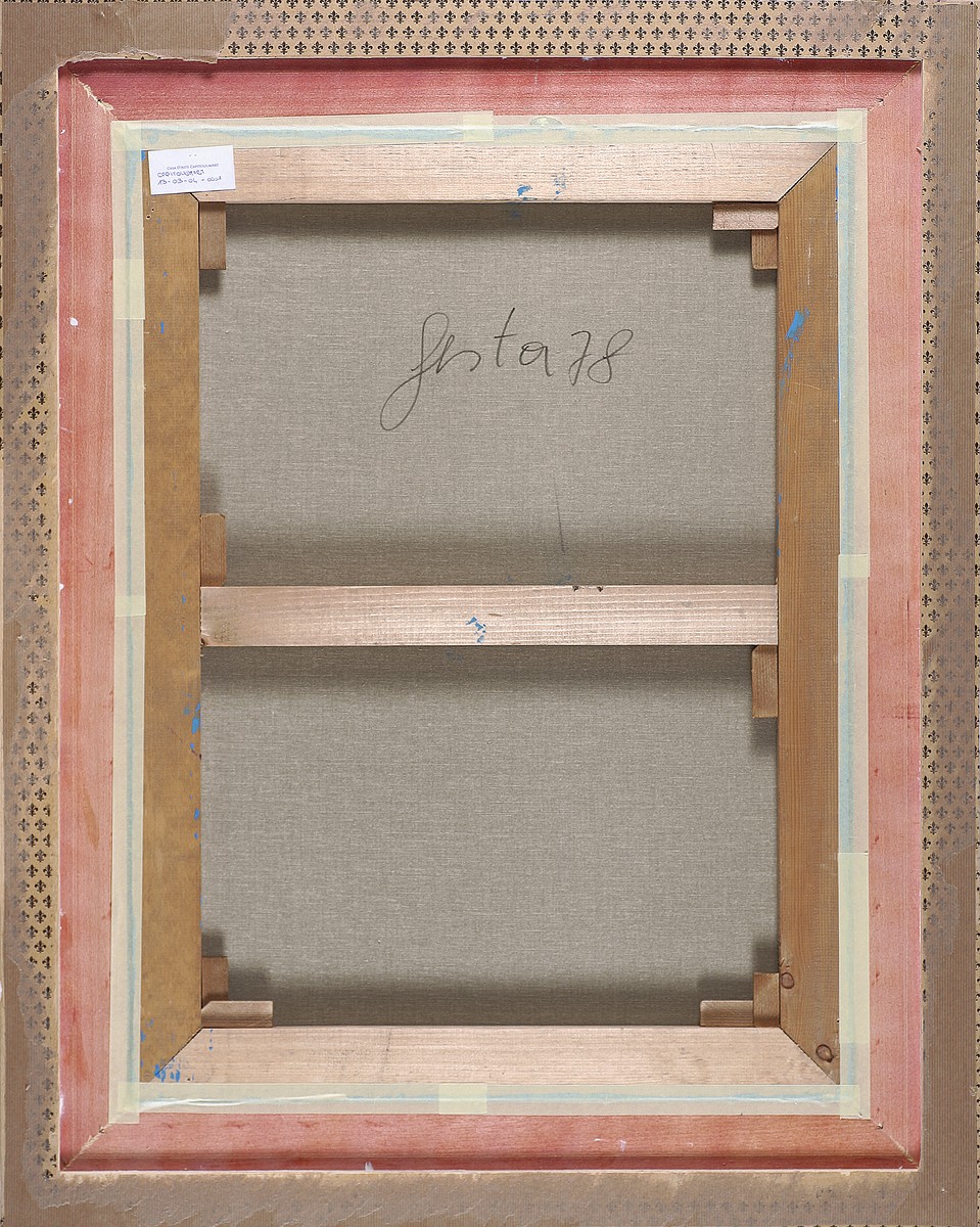 FESTA TANO (1938 - 1988) Senza titolo. 1978. Tecnica mista su tela . Cm 60,00 x 80,00. Al retro firma e data. Opera archiviata presso l'Archivio Tano festa a cura dello Studio Soligo, Roma, come da documentazione fotografica allegata riportante il relativo numero d'inventario. . Cornice presente