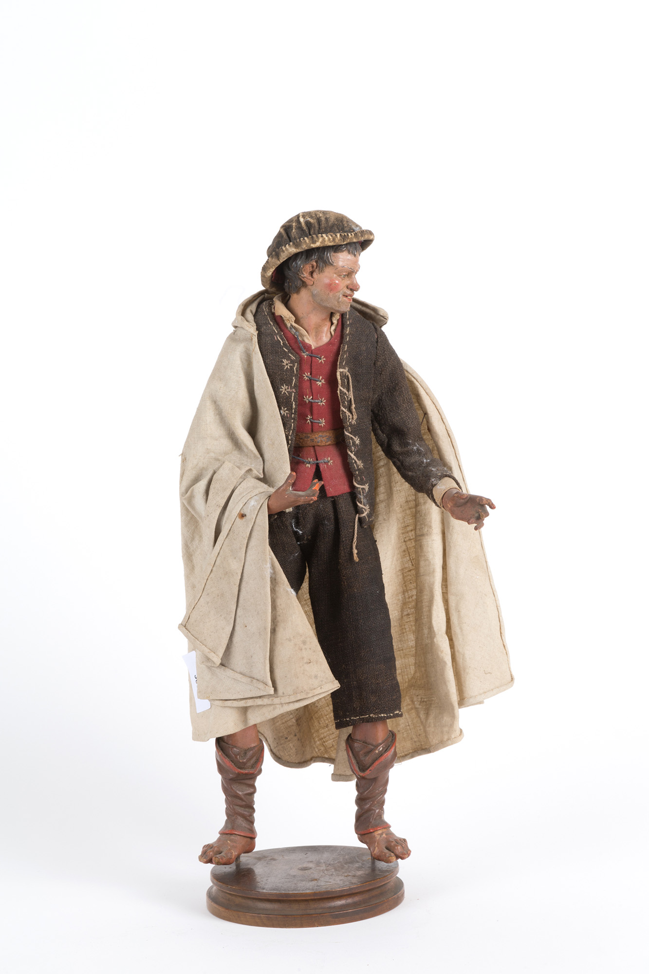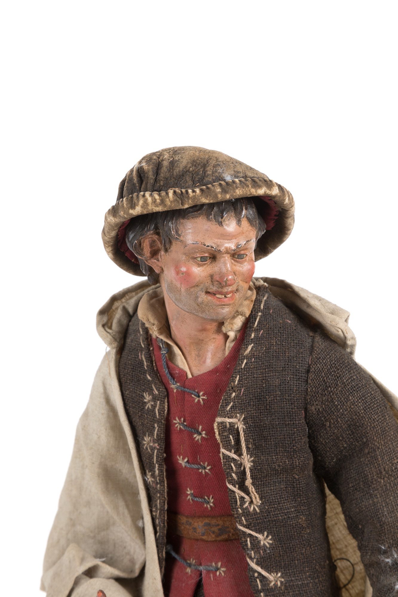 CAMILLO CELEBRANO (Napoli, 1780 c.a - 1828). Pastore in terracotta, legno, paglia e vestiti originali. Napoli. XIX secolo. Mis. Alt. cm. 39 ca.