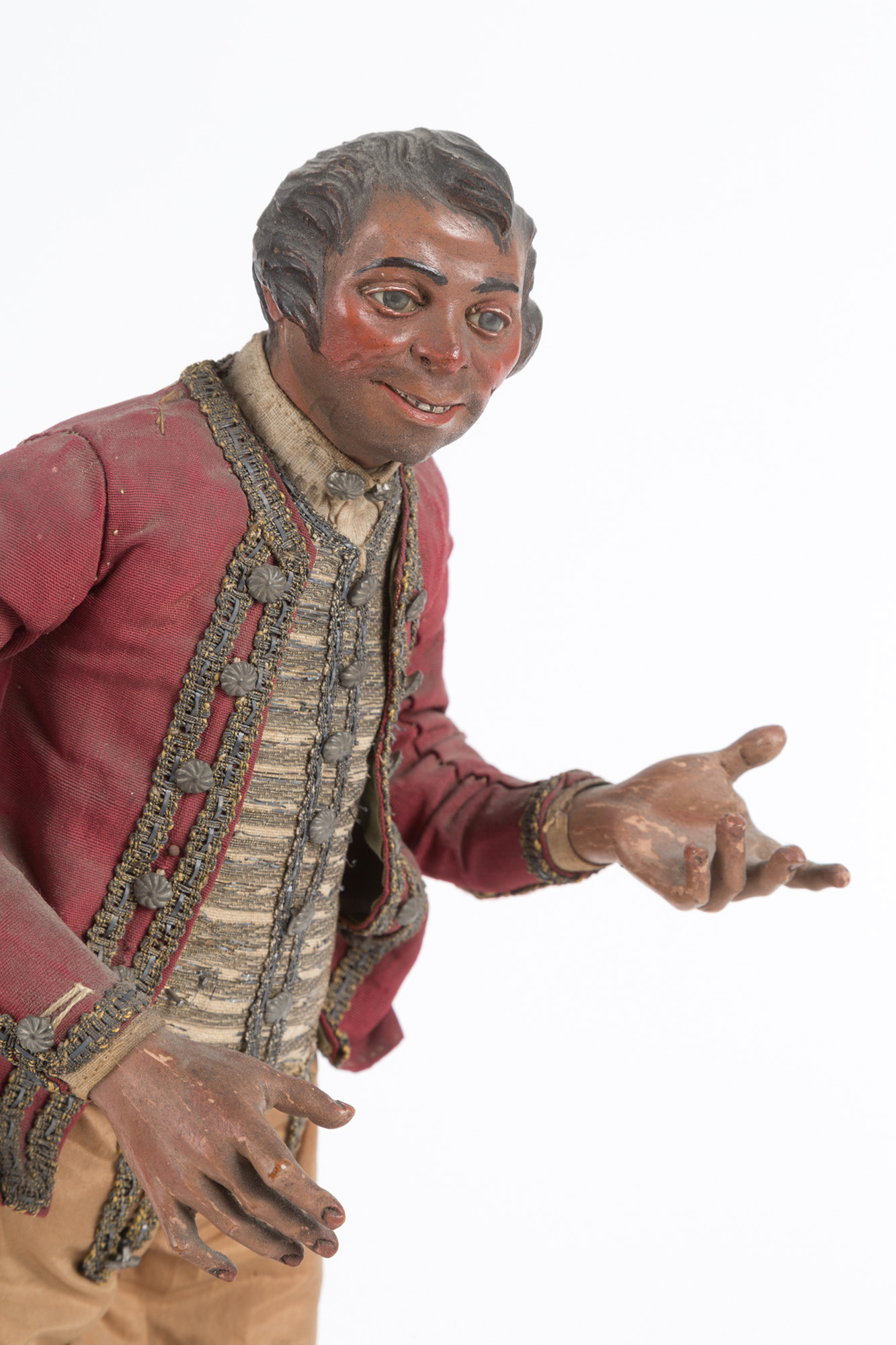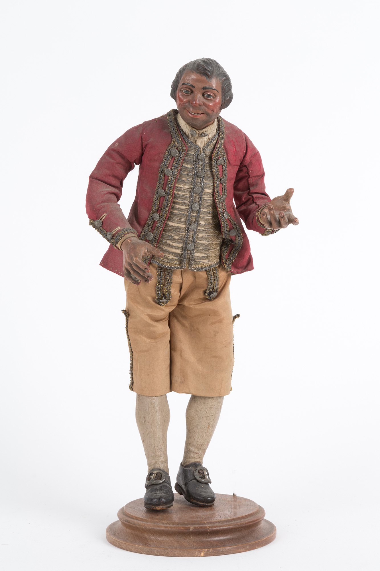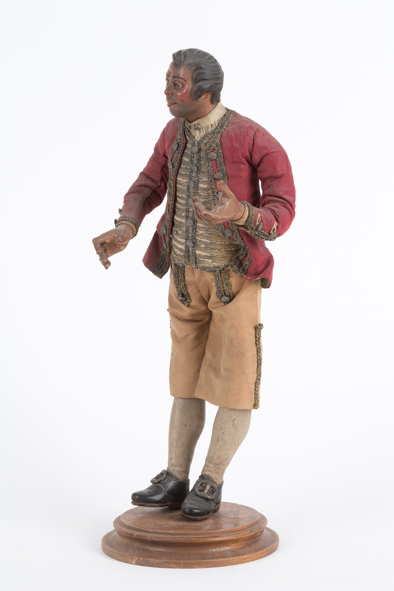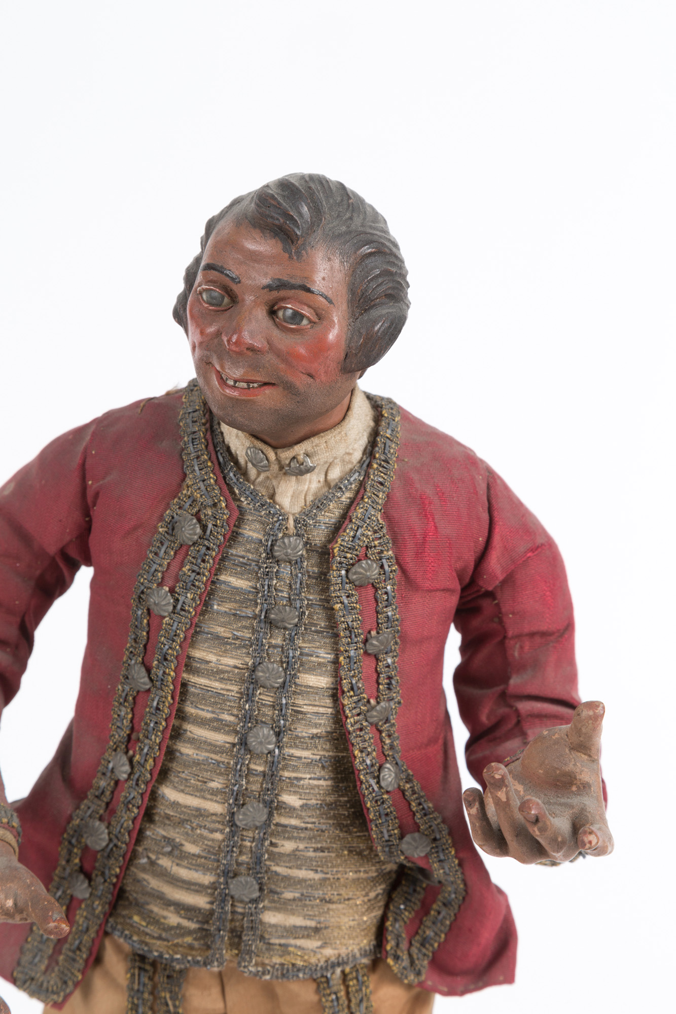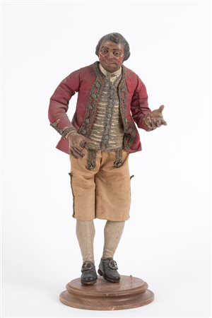 LORENZO MOSCA (Napoli, ? - 1789). Maggiordomo in terracotta, legno, paglia e vestiti originali. Napoli. XIX secolo. Mis. Alt. cm. 34 ca.