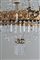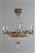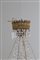 Lampadario otto bracci in lamierino sbalzato e dorato con pendenti e gocce in vetro molato. Toscana. Inizi XIX secolo. Difetti e mancanze. Mis. Alt. cm. 120 Diam. cm. 90 ca.