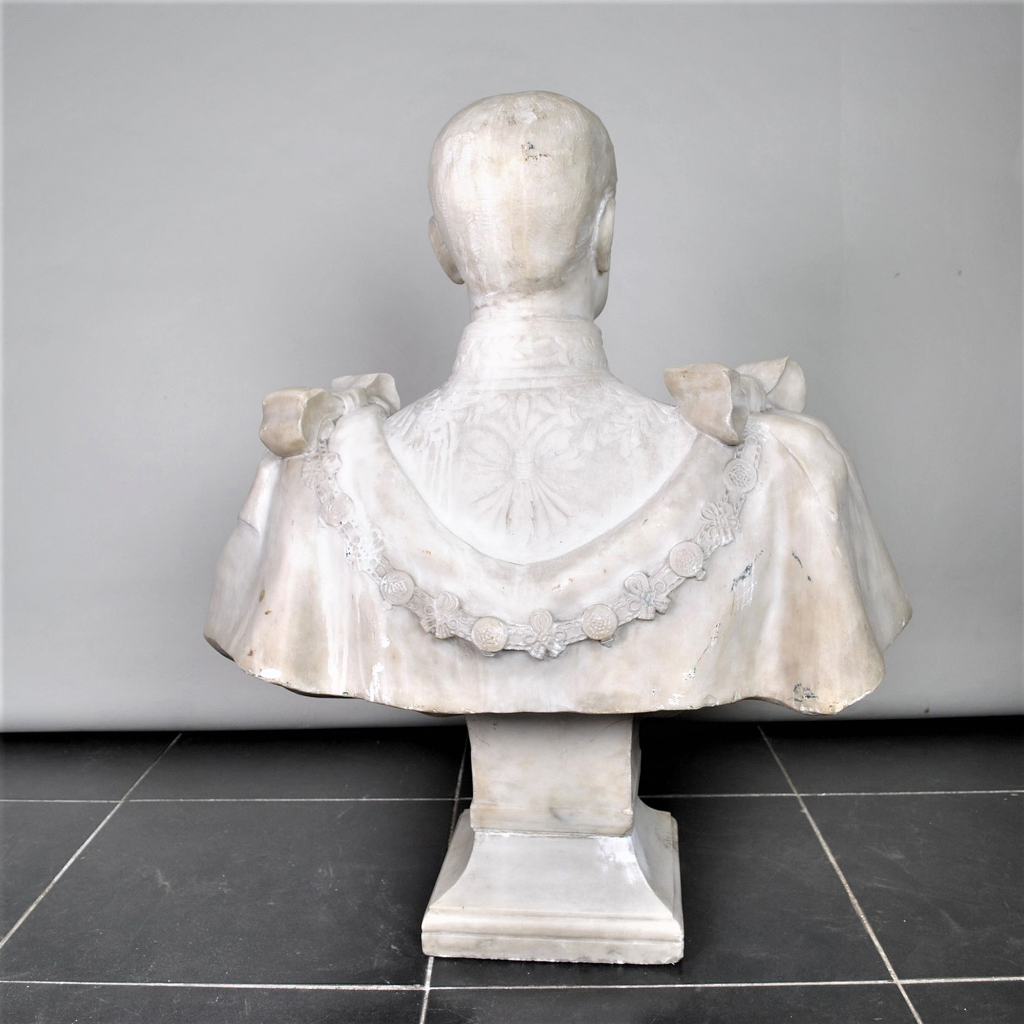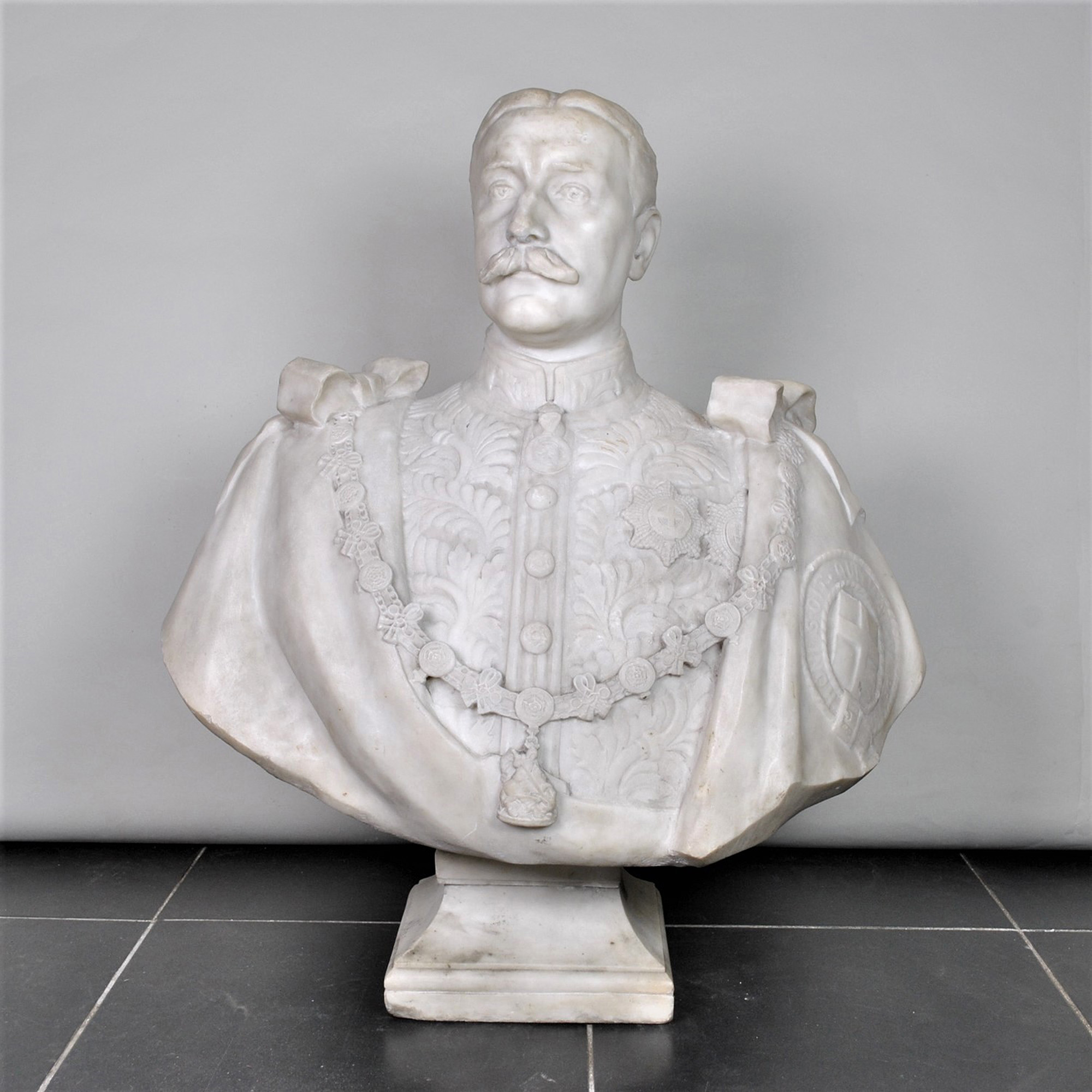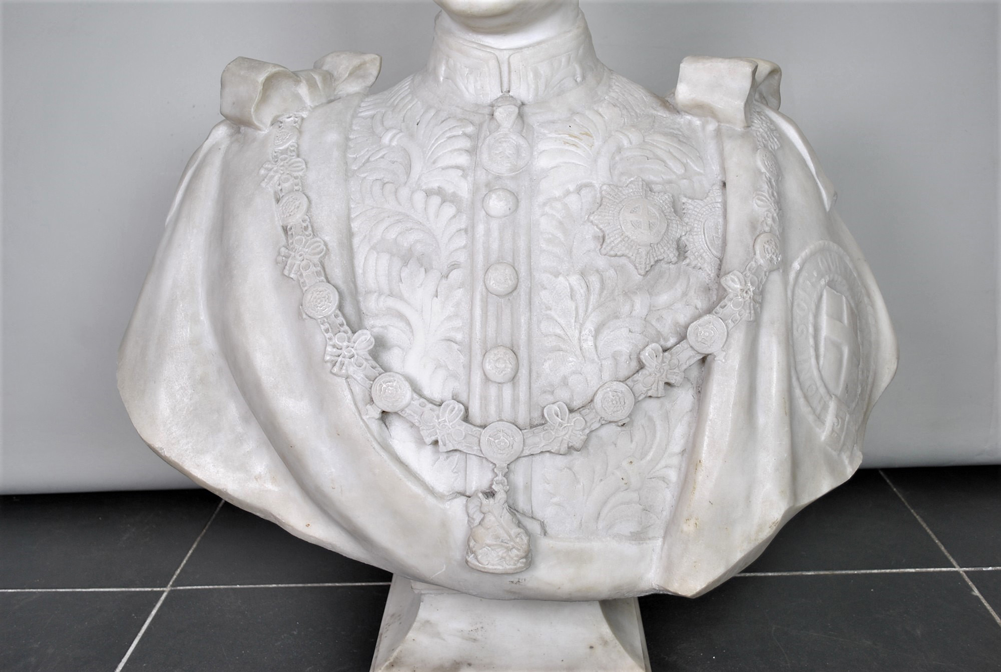 Scultura in marmo raff. ''BUSTO DI UN MEMBRO DELL'ORDINE DELLA GIARRETTIERA''. XIX secolo. Mis. Lung. cm. 80 Alt. cm. 90 Prof. cm. 40 ca.