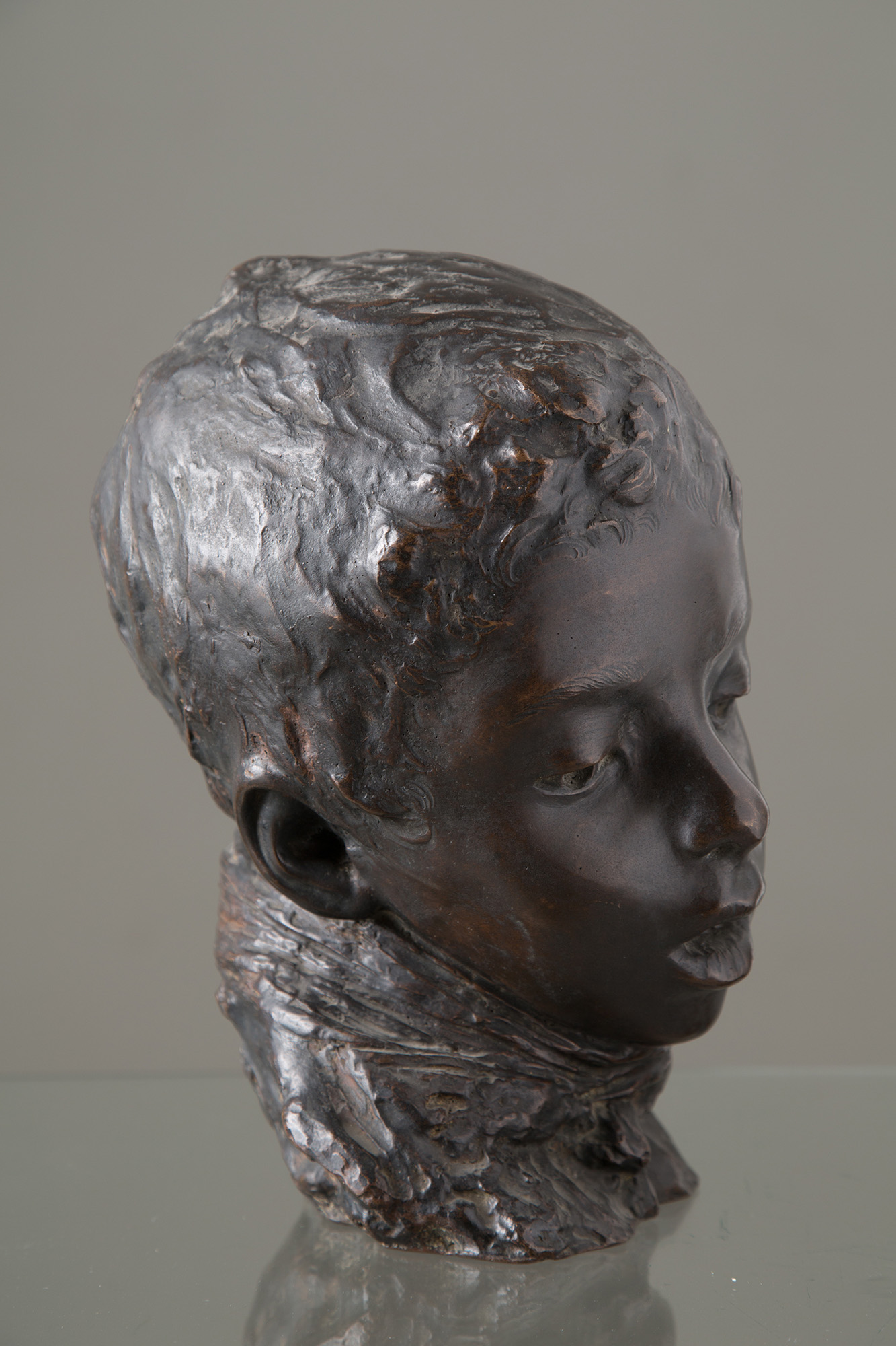 VINCENZO GEMITO (Napoli, 1852-1929). Scultura in bronzo raff. ''TESTA DI BAMBINO''. Firmata alla base. Mis. Alt. cm. 28 ca.