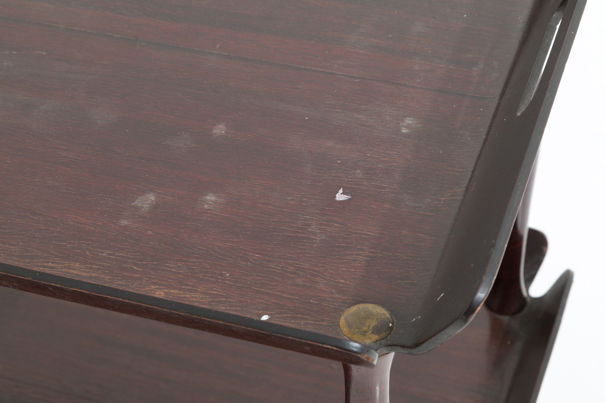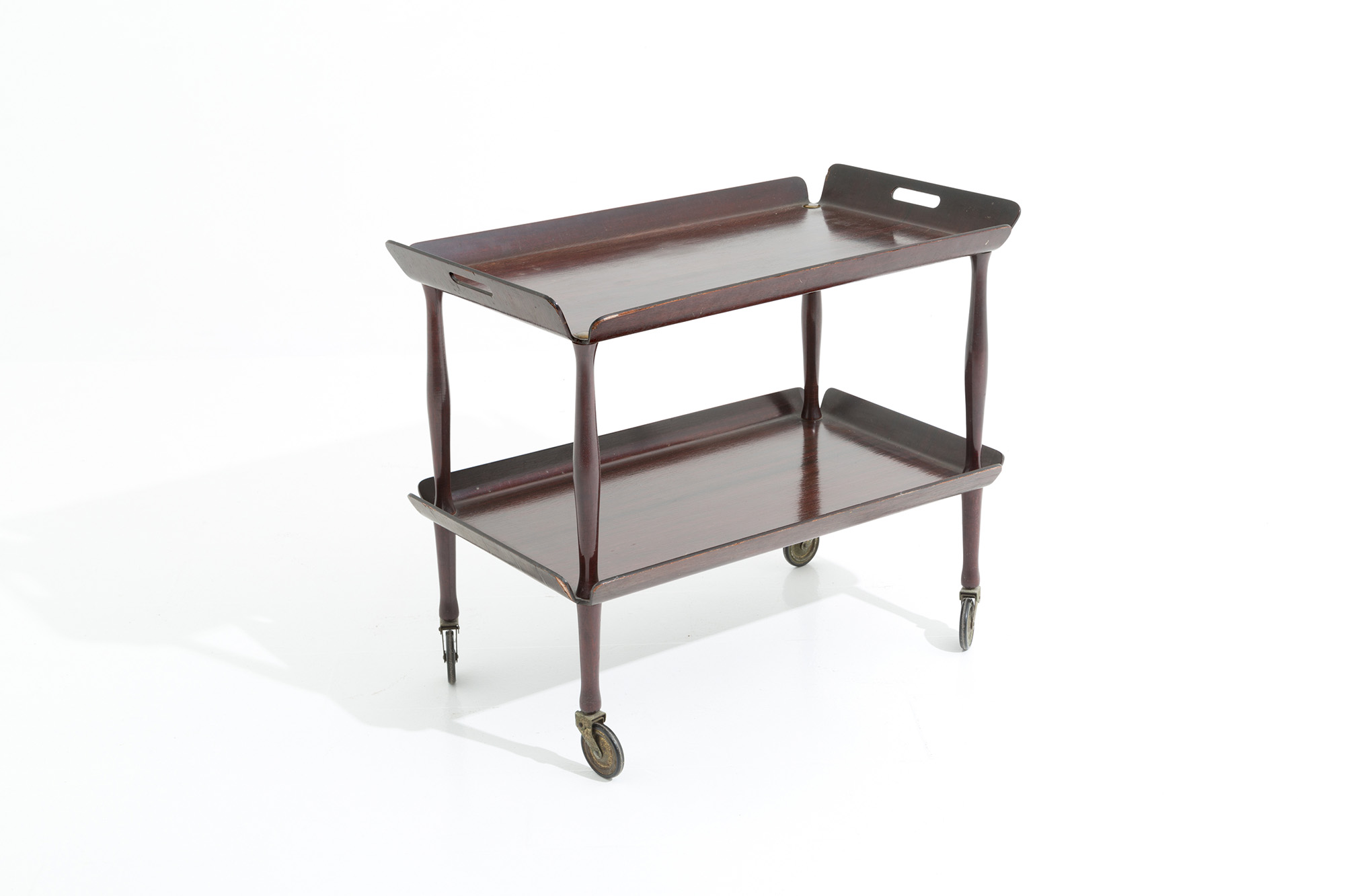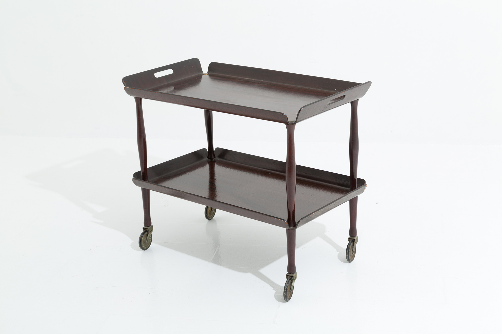 Carrello in legno curvato. Manifattura italiana. Anni '60. Mis. Lung. cm. 80 Alt. cm. 65 Prof. cm. 45.5 ca.