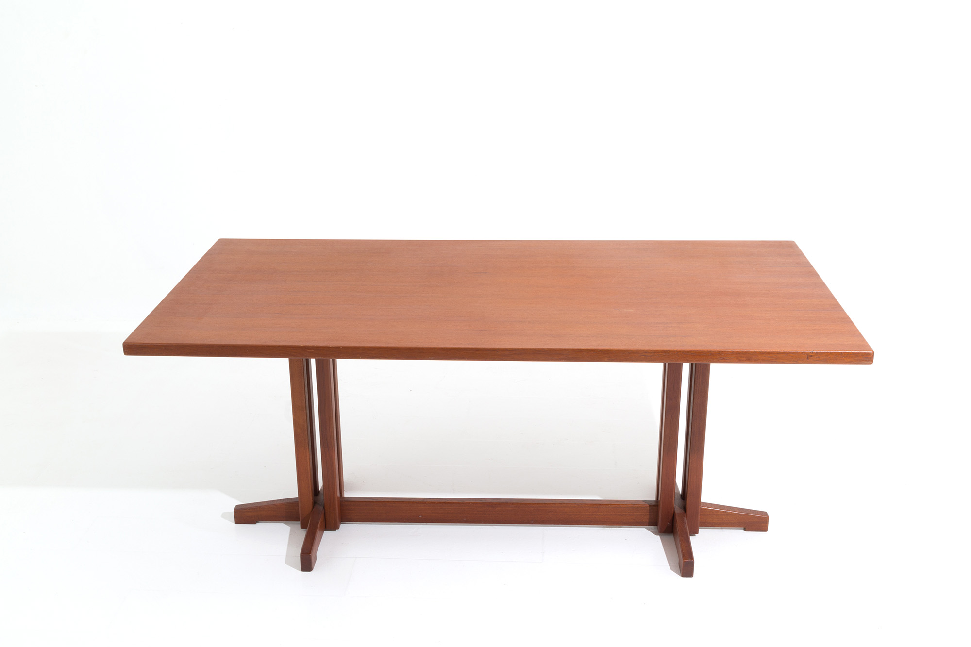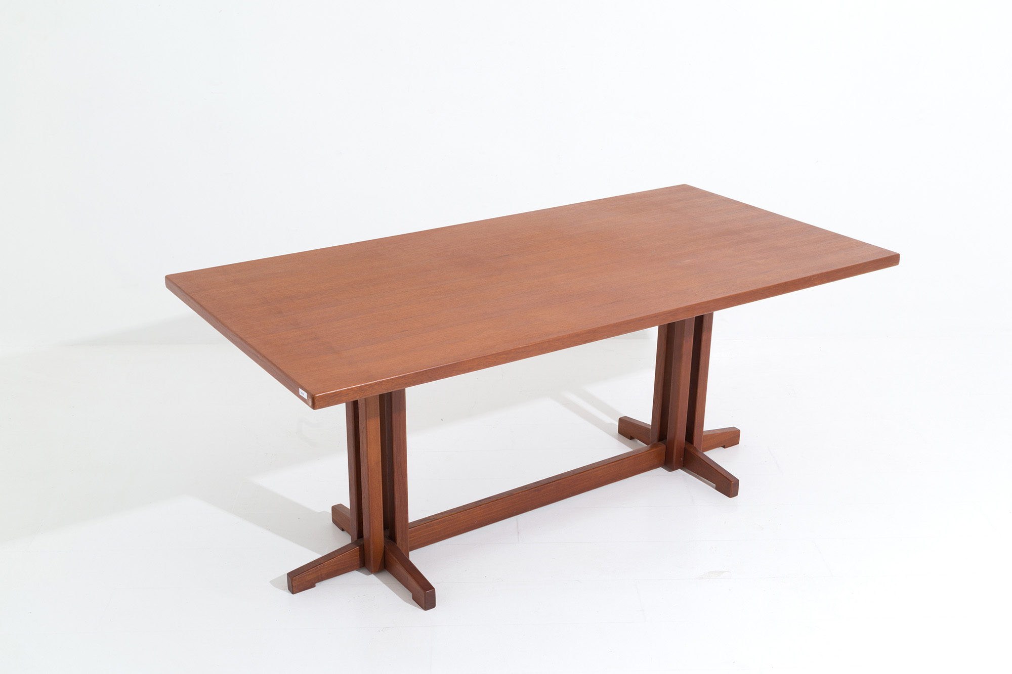 Tavolo in legno massello. Manifattura italiana. Anni '50. Mis. Lung. cm. 184 Alt. cm. 77 Prof. cm. 91 ca.